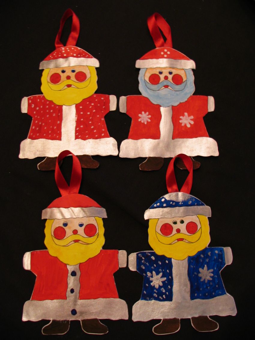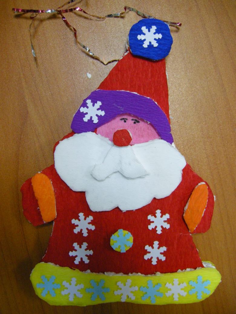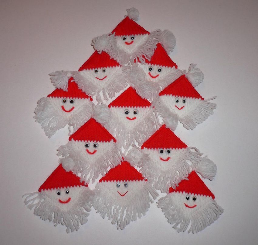 Cette option convient pour décorer le sapin de Noël, la chambre des enfants, la table de Noël. Plusieurs modèles peuvent être fabriqués pour tous les emplacements de la maison. Un bricolage du Père Noël pour les enfants peut être réalisé à partir d'un modèle ou de papier par vos propres moyens.