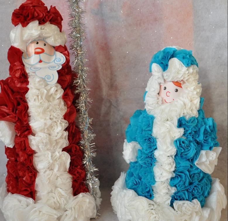 - Les figures de la jeune fille des neiges et du Père Noël sont créées à partir de papier coloré ;