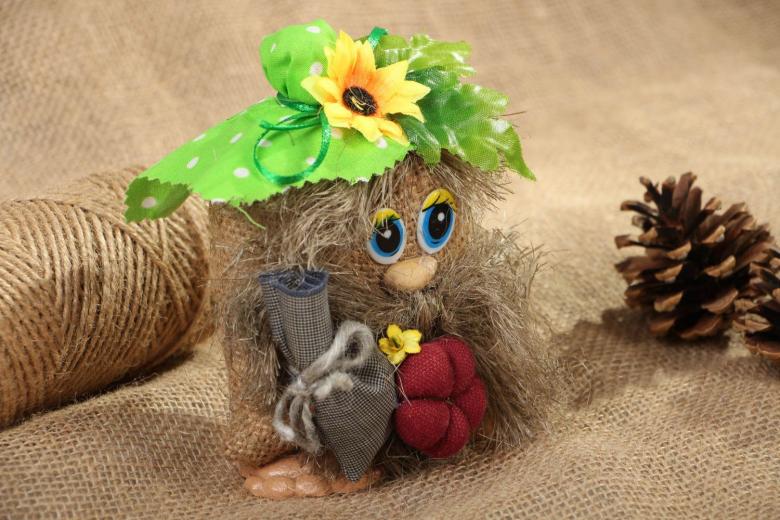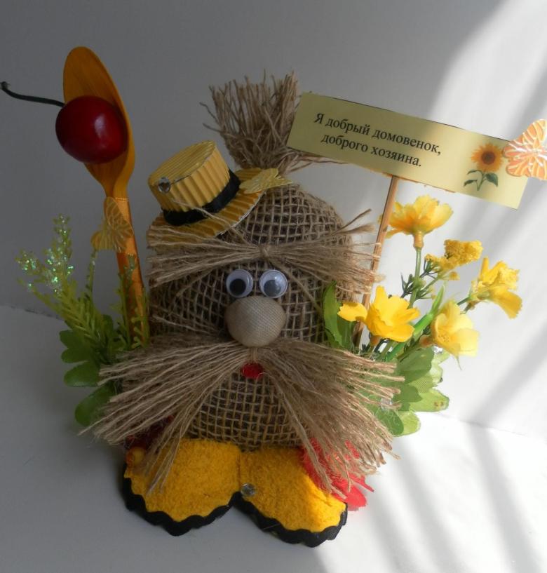 Une poupée artisanale fabriquée avec soin et goût sera un bon élément décoratif dans le couloir ou la cuisine. Même les enfants peuvent le faire, c'est pourquoi ils sont inclus dans le plan de cours de technologie à l'école primaire.