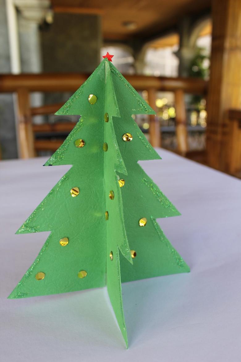 Une façon simple et rapide de fabriquer un arbre de Noël est d'utiliser du papier ou du carton de couleur. Il existe de nombreuses possibilités pour fabriquer un arbre en carton. D'un simple arbre de Noël avec deux pièces symétriques emboîtées l'une dans l'autre à un arbre original en forme de cône.