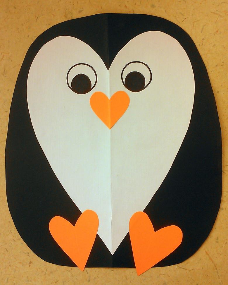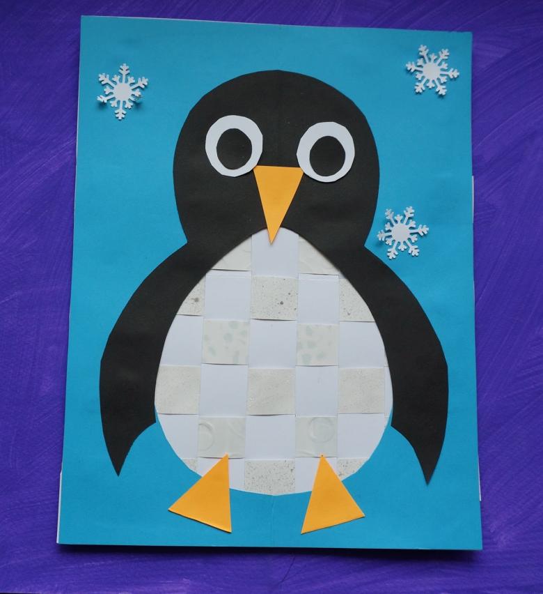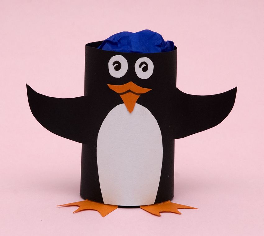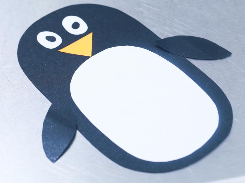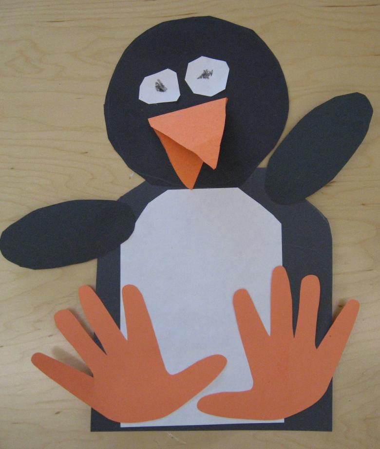 Ensuite, tout est facile, tu peux discrètement "finir" à notre pingouin ses pattes et ses ailes avec un bec. Sous la feuille, le fil ne sera pas visible, et la construction tiendra bien mieux que n'importe quelle colle ou ruban adhésif.