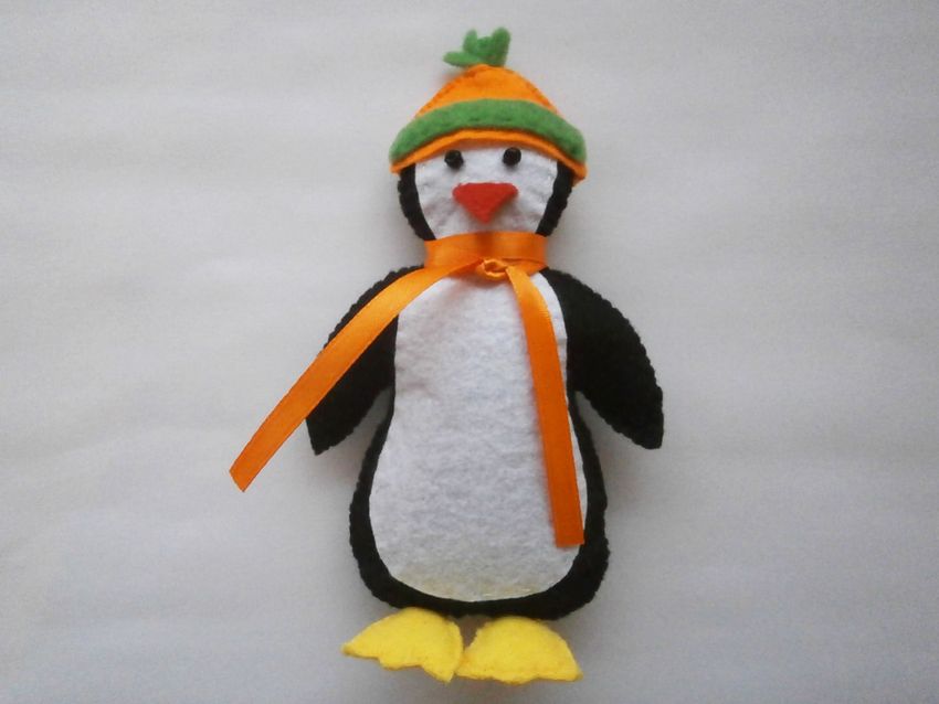 Pour commencer, il doit être "rembourré" comme une peluche, mais ne cousez pas le vide ! Commencez par coudre les détails. Fais des ailes et un bec pour le pingouin.