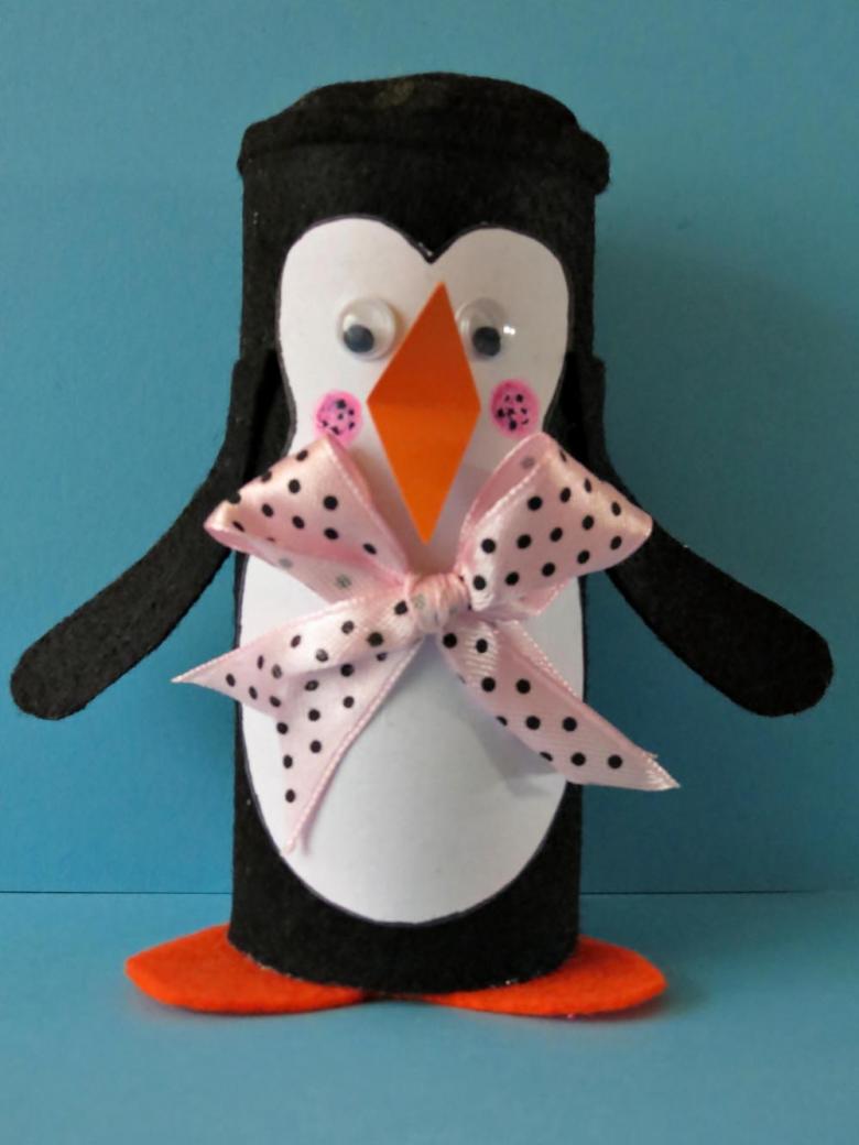 En guise d'yeux, tu peux ajouter des perles et des paillettes, puis le pingouin fera un super cadeau pour maman ou un faux pour l'école/le jardin d'enfants.