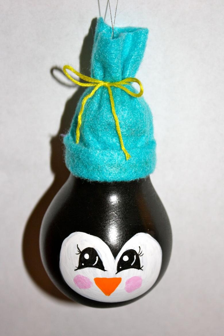 Après cela, il ne vous reste plus qu'à peindre le pingouin. Pour ce faire, la peinture gouache, l'acrylique ou, mieux encore, le vernis à ongles sont excellents. De cette façon, l'œuvre aura une belle brillance une fois sèche.