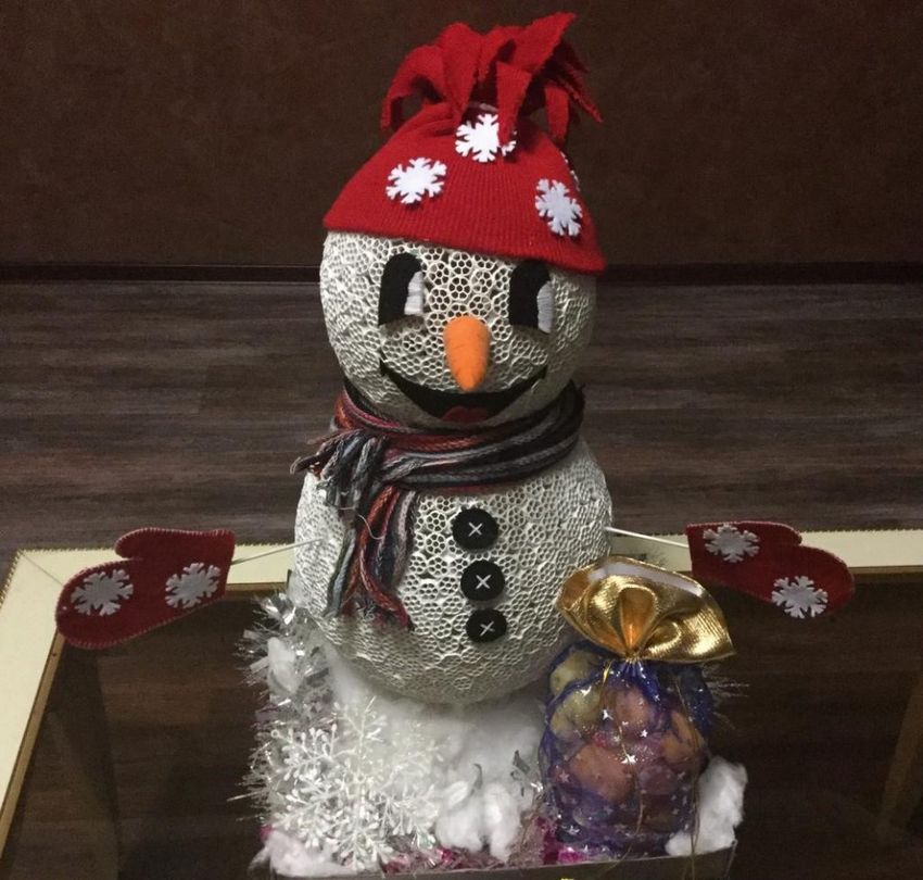 - Comme matière de remplissage pour la formation d'un bonhomme de neige artisanal, il est avantageux d'utiliser des petits gruaux, du sintepon, de la ouate ;