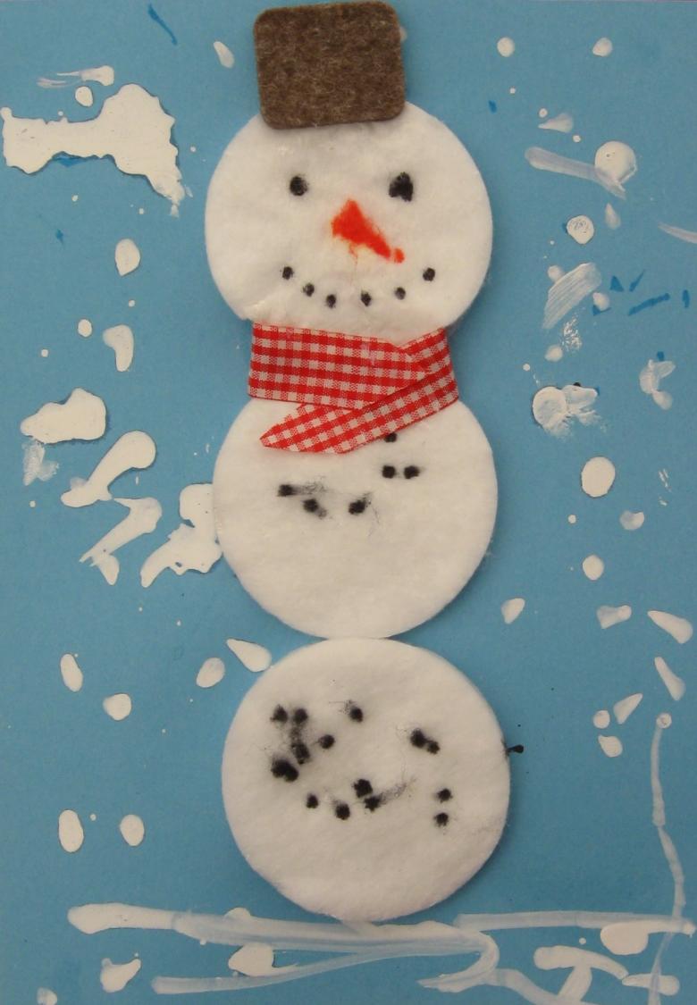 Un bonhomme de neige à base de disques d'ouate