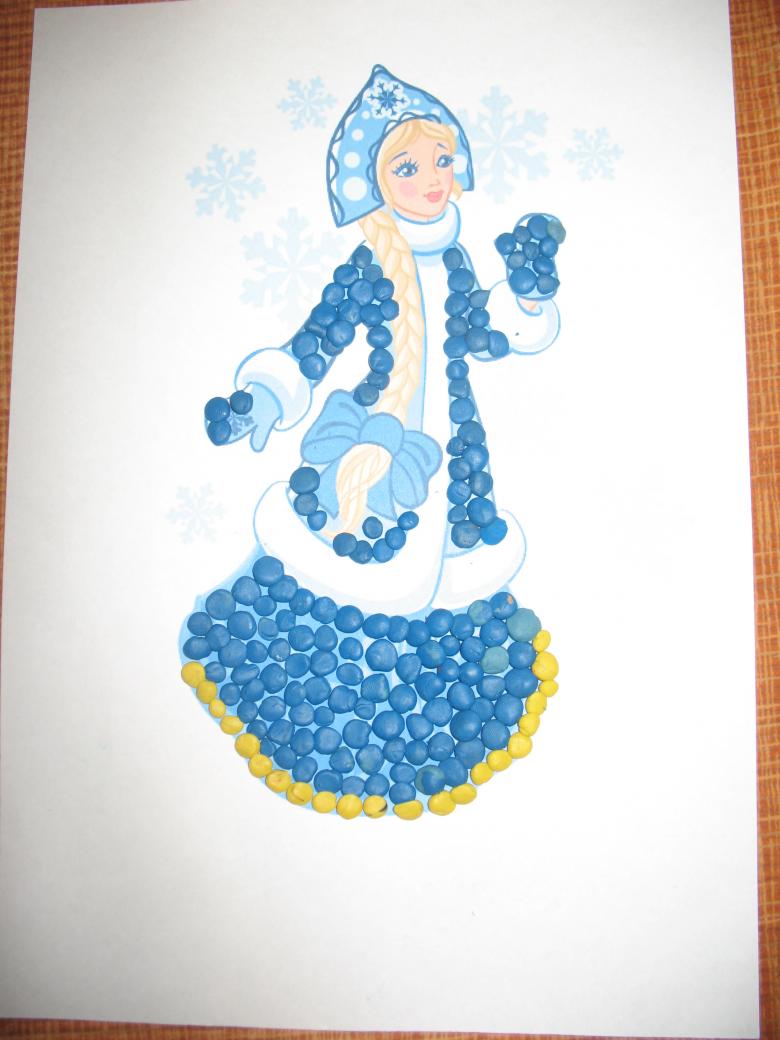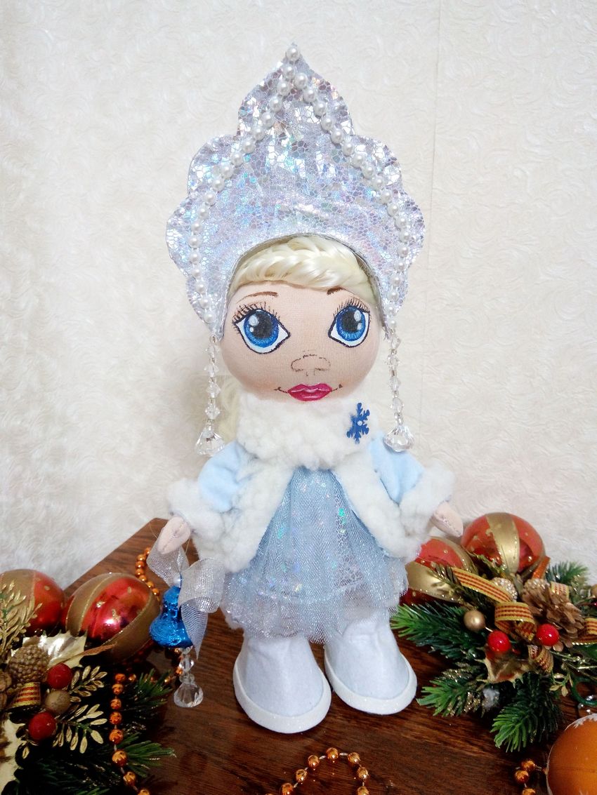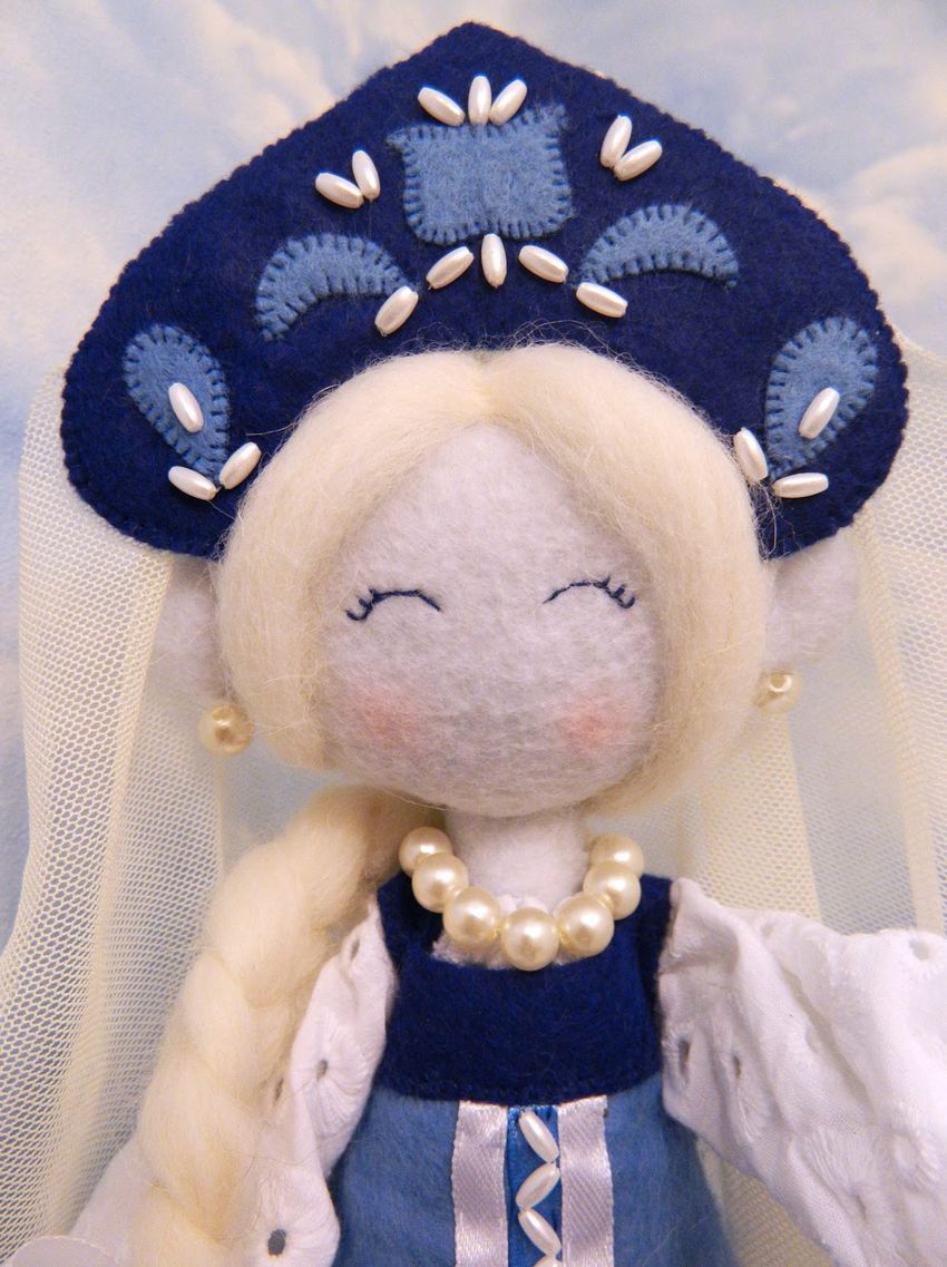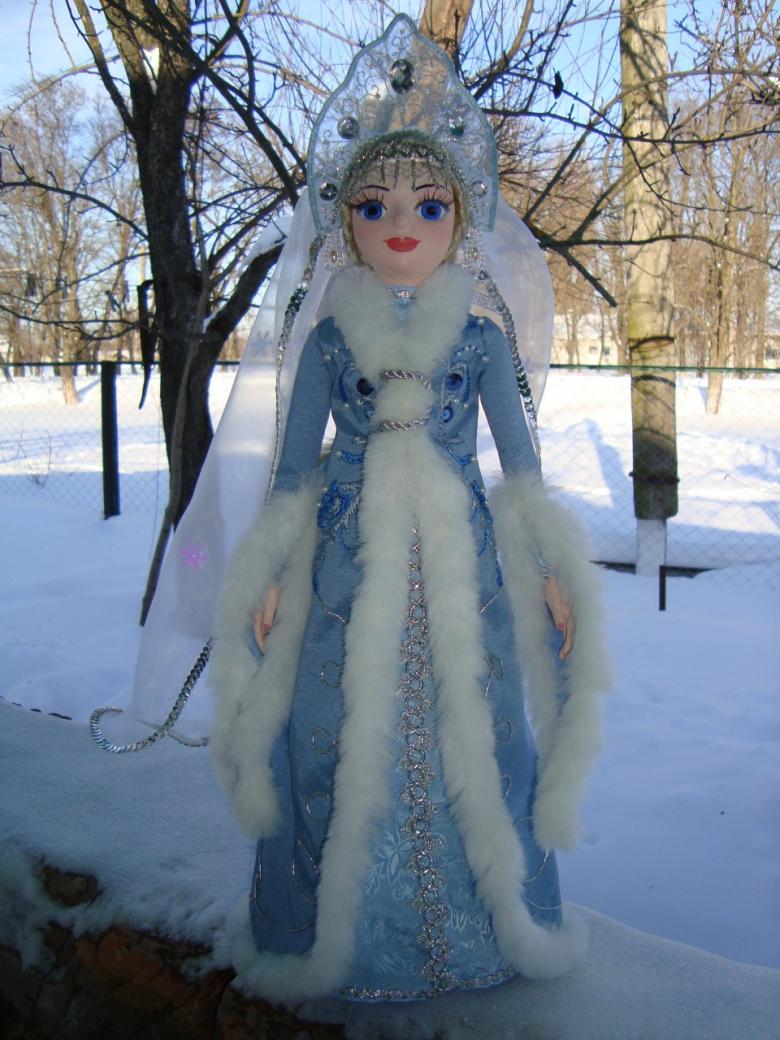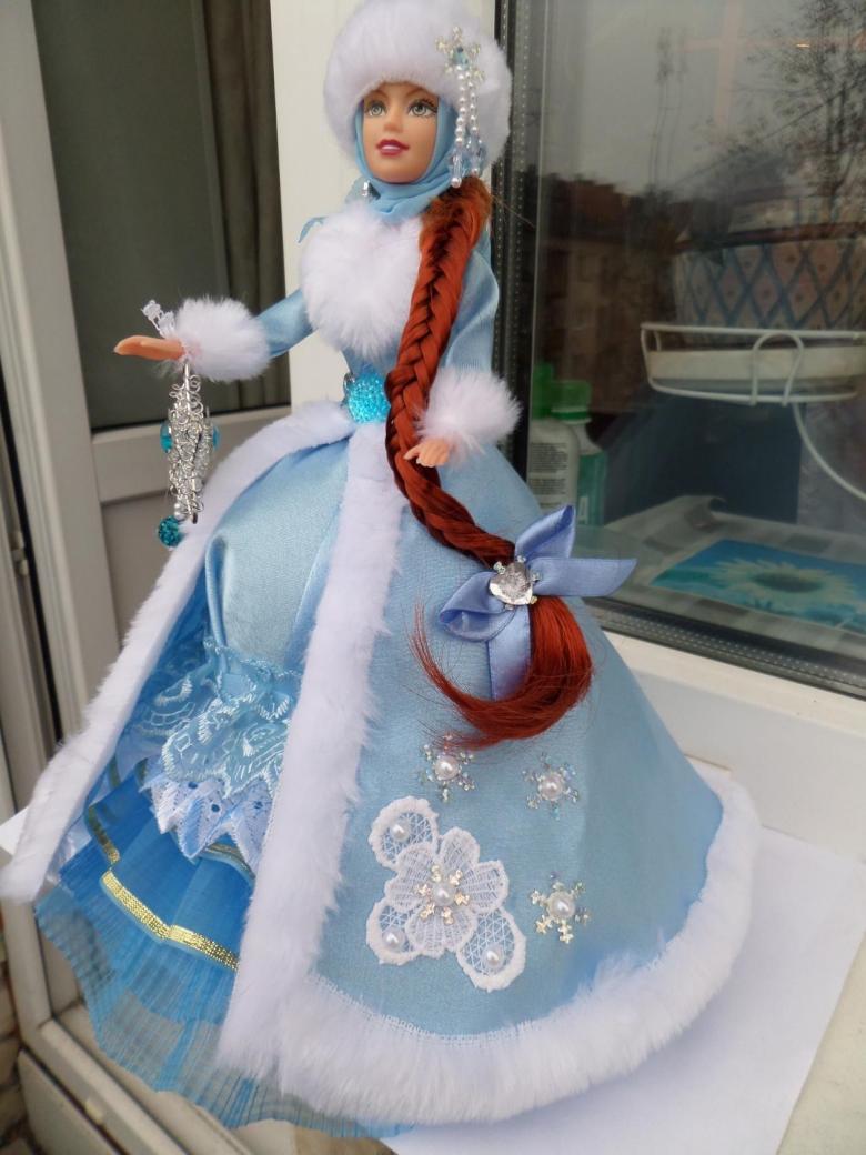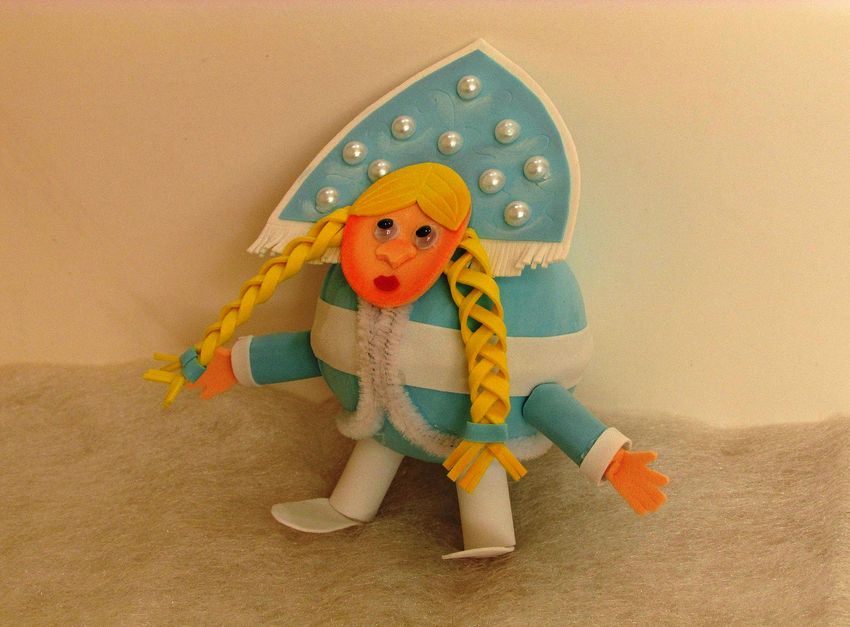 Qui va faire différents "patchs" sur la Snow Maiden. Il peut s'agir de perles sur sa robe, ou de certains éléments de tissu. À propos, une idée très populaire pour le "visage" de la jeune fille des neiges était le prototype du personnage de Disney Elsa du dessin animé