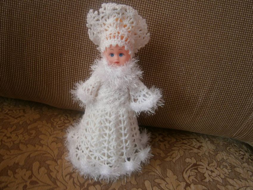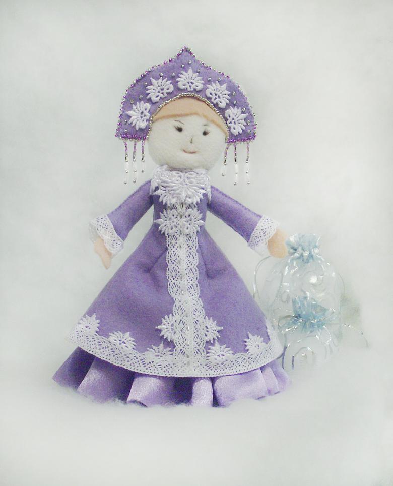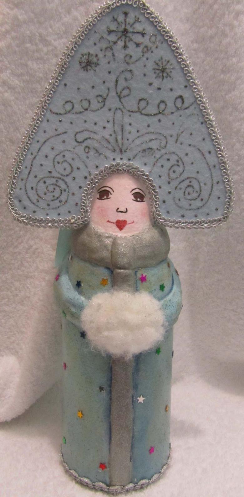 Pour la base, vous pouvez prendre l'un des imprimés sur Internet et réaliser une vierge des neiges à partir du patron, avec tous les éléments décoratifs. De la même manière, vous pouvez fabriquer une petite vierge des neiges pour décorer un arbre de Noël.