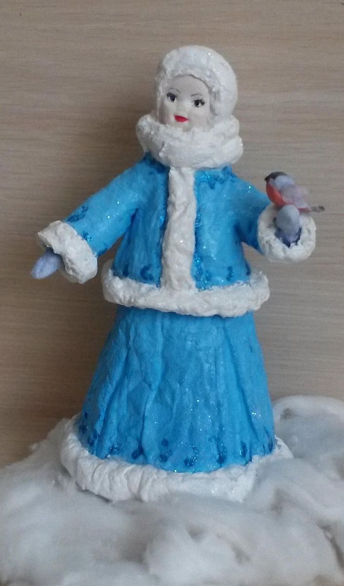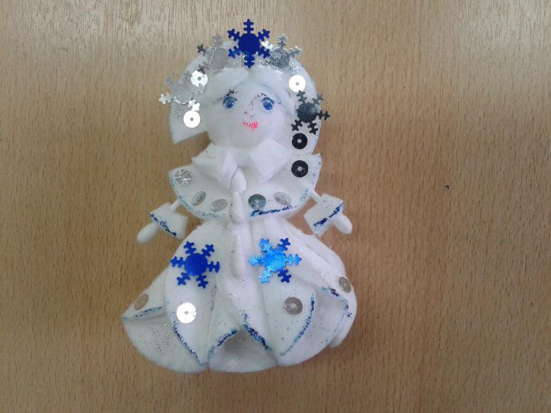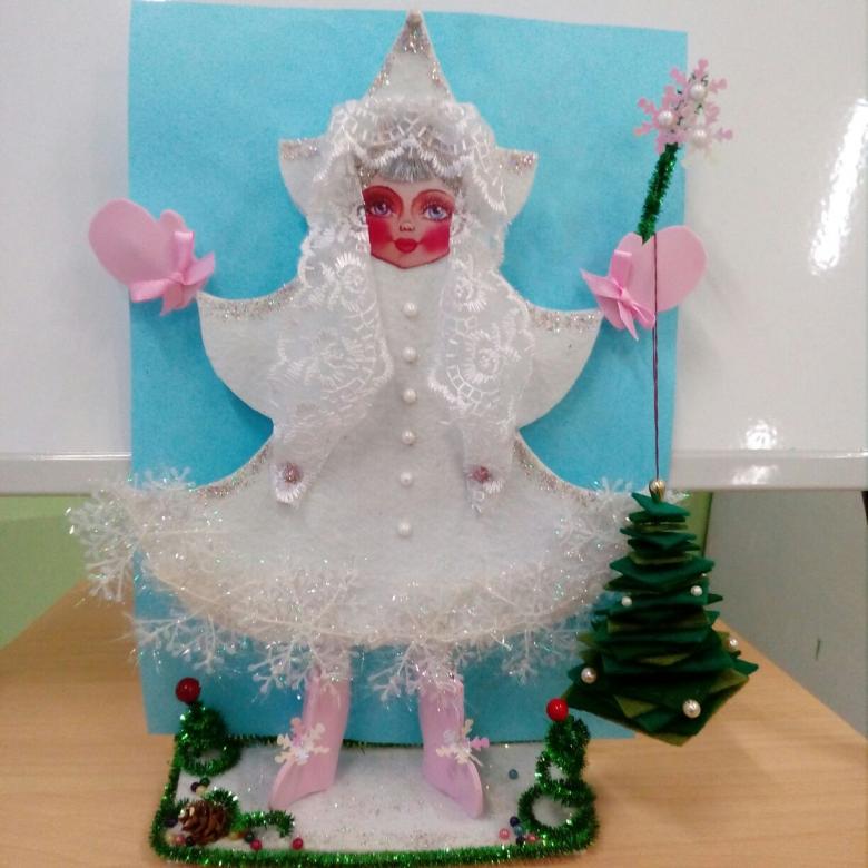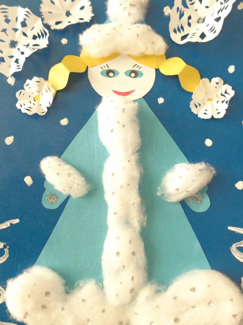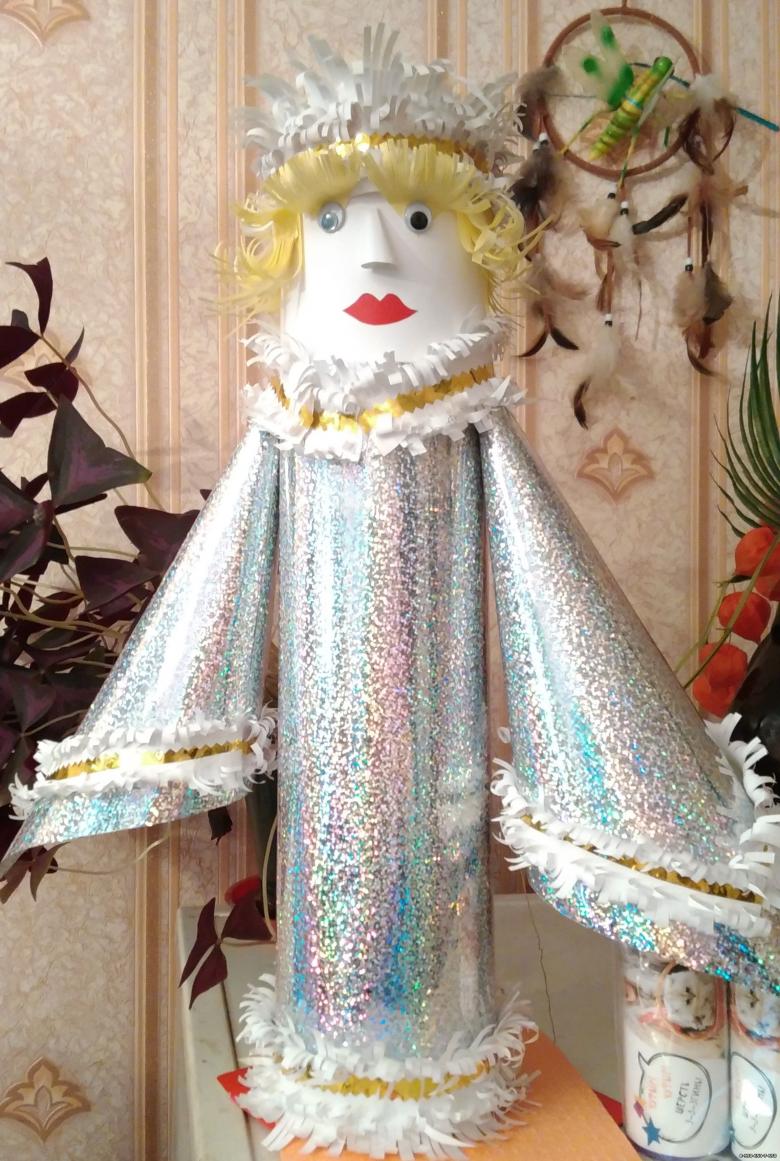 De plus, vous pouvez décorer la jeune fille des neiges avec du coton, du papier d'aluminium et d'autres éléments "enneigés", ce qui ajoutera à son entourage festif.