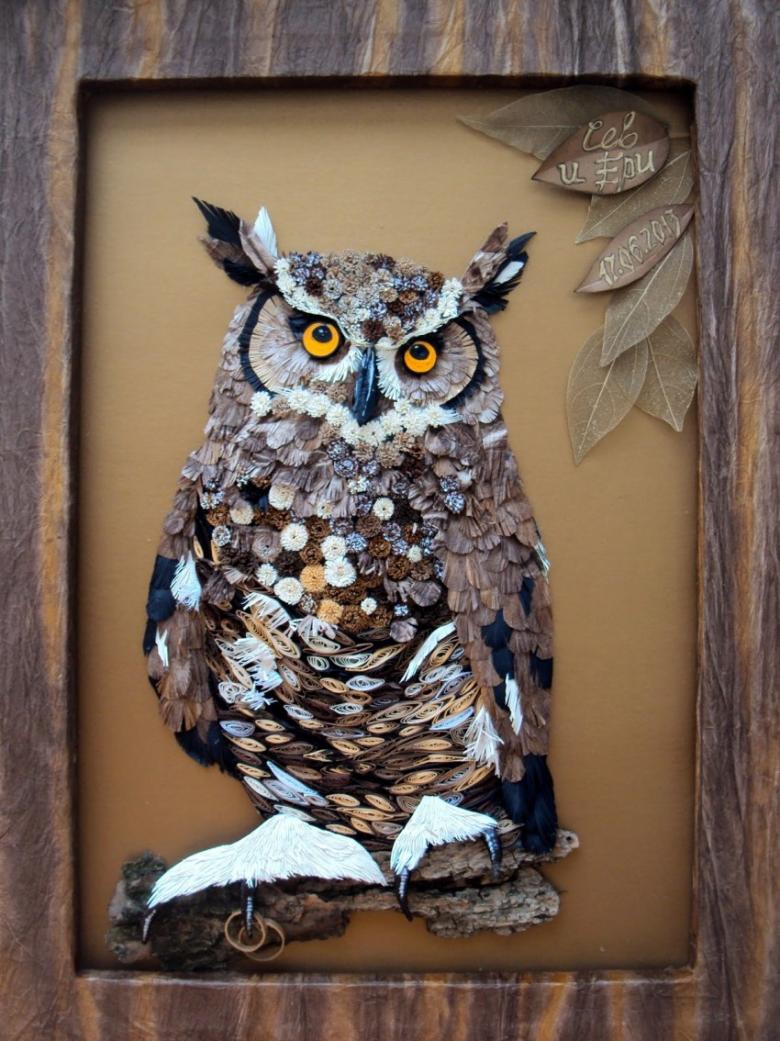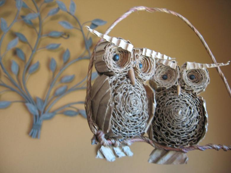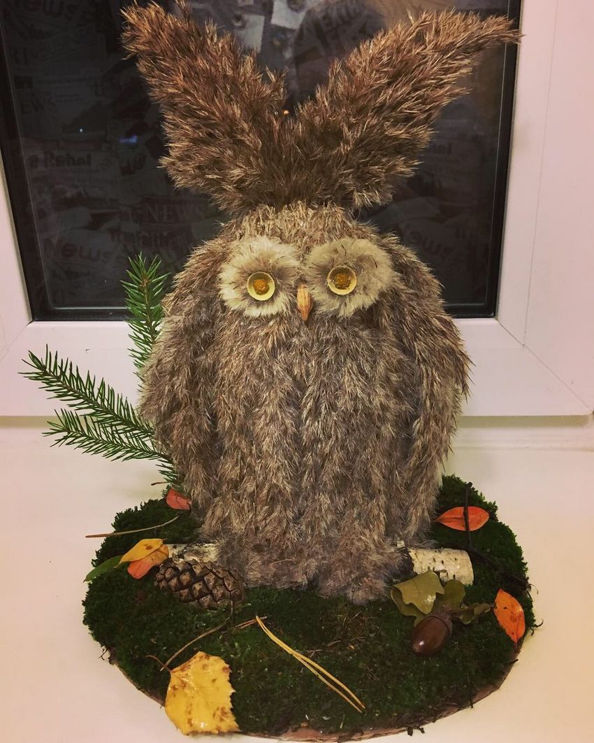 La chouette aura un aspect inhabituel et attrayant. Il s'agit d'un artisanat simple qui se démarquera des autres produits utilisant ce matériau. Le secret est que dans cette décoration d'intérieur, la partie supérieure (tête et oreilles d'un hibou) sera cachée et se distinguera par sa concision et son aspect soigné.