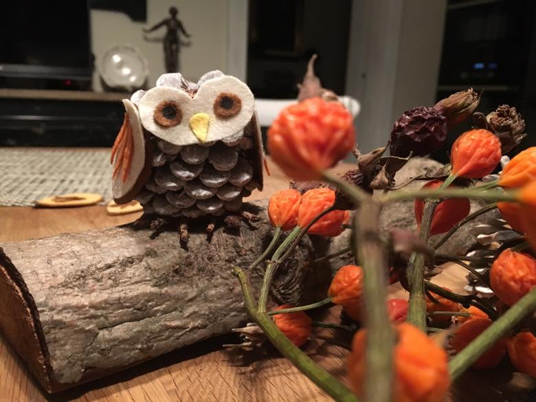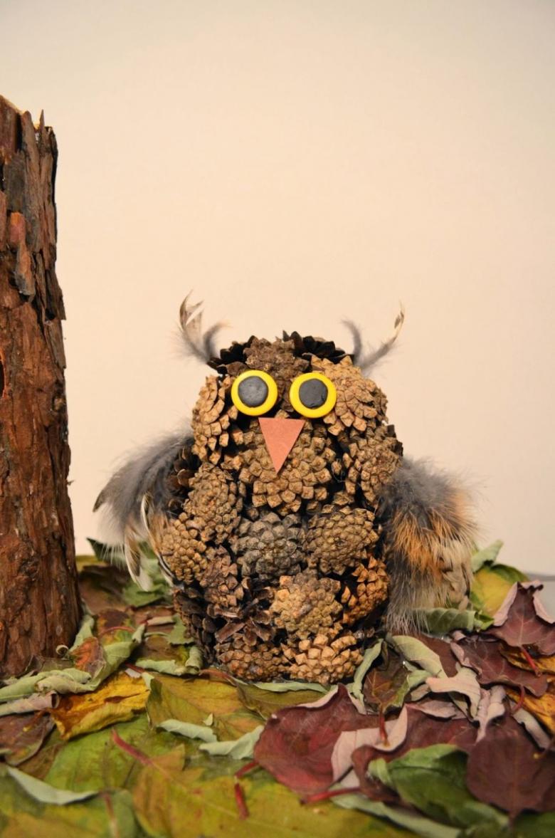 Artisanat d'une chouette en cônes prêt !