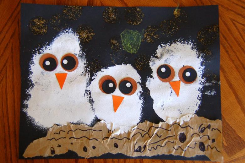 L'appliqué d'une chouette à partir de disques d'ouate est prêt !