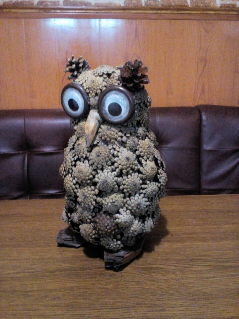 L'artisanat d'une chouette en cônes est une bonne option pour des produits fabriqués avec des matériaux accessibles à tous. Le hibou aura un aspect lumineux et naturel, car les "plumes" d'épicéa ne ressemblent pas simplement aux plumes d'un hibou.