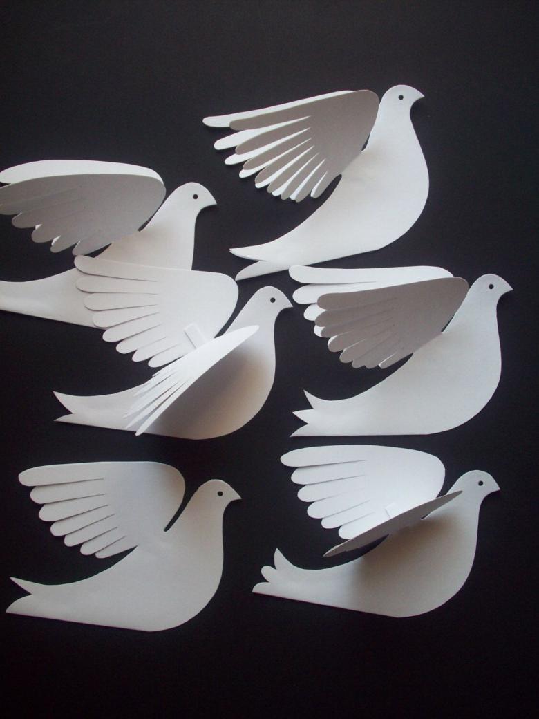 Pour fabriquer un oiseau, on plie une bande de papier en un nœud dont une extrémité est plus longue que l'autre. La queue est découpée sur le plus court et la tête sur le plus long.