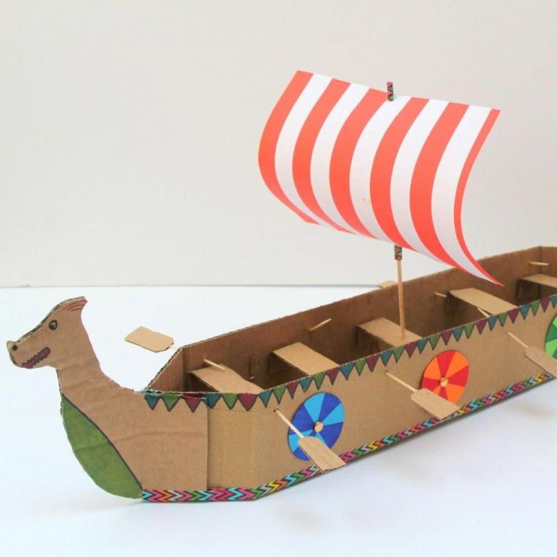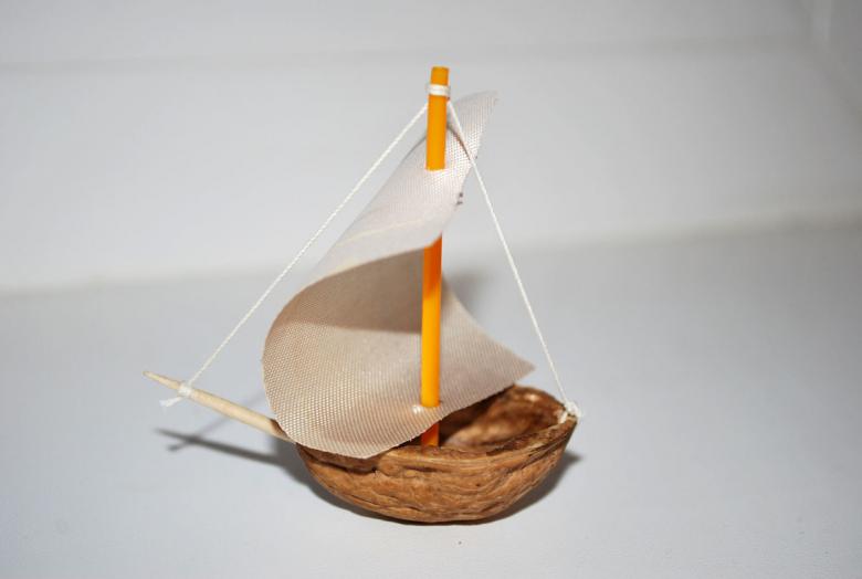 - Découpez un espace au sommet pour un mât, qui servira de bâton. Sur elle, mettez une voile en papier.