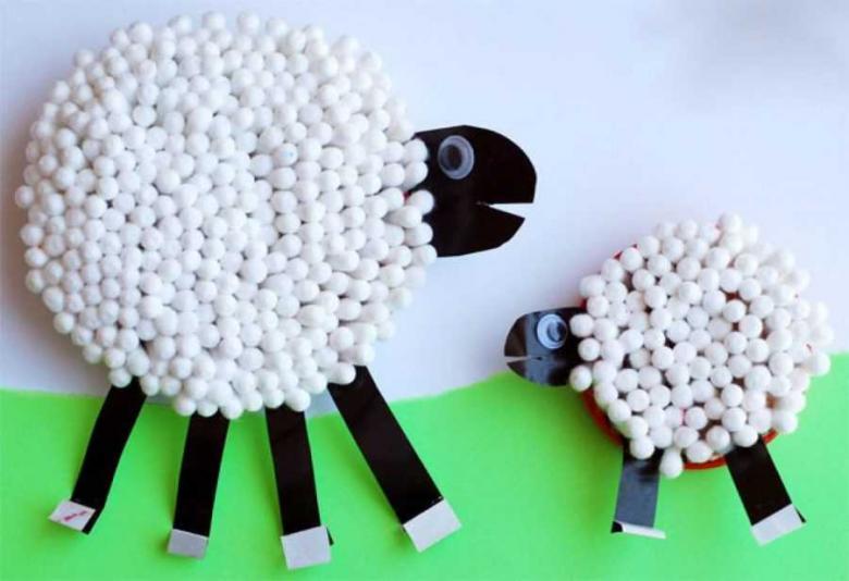 - Les bâtonnets de coton peuvent être utilisés non seulement pour le corps, mais aussi pour les pattes et les poils de la tête de l'agneau.