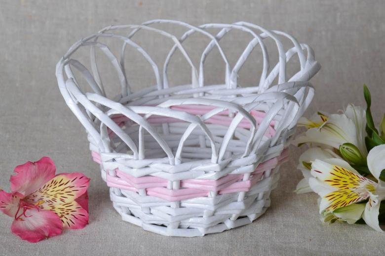 Remplissez votre cuisine de bâtons de bonbons, de bols de pain et de crackers. Pour les fabriquer, vous avez besoin de tubes de papier blanc ou de vigne (framboise, mûre). Des brindilles de saule souples peuvent également être utilisées. Tisser des petits paniers de la même manière que les paniers habituels.