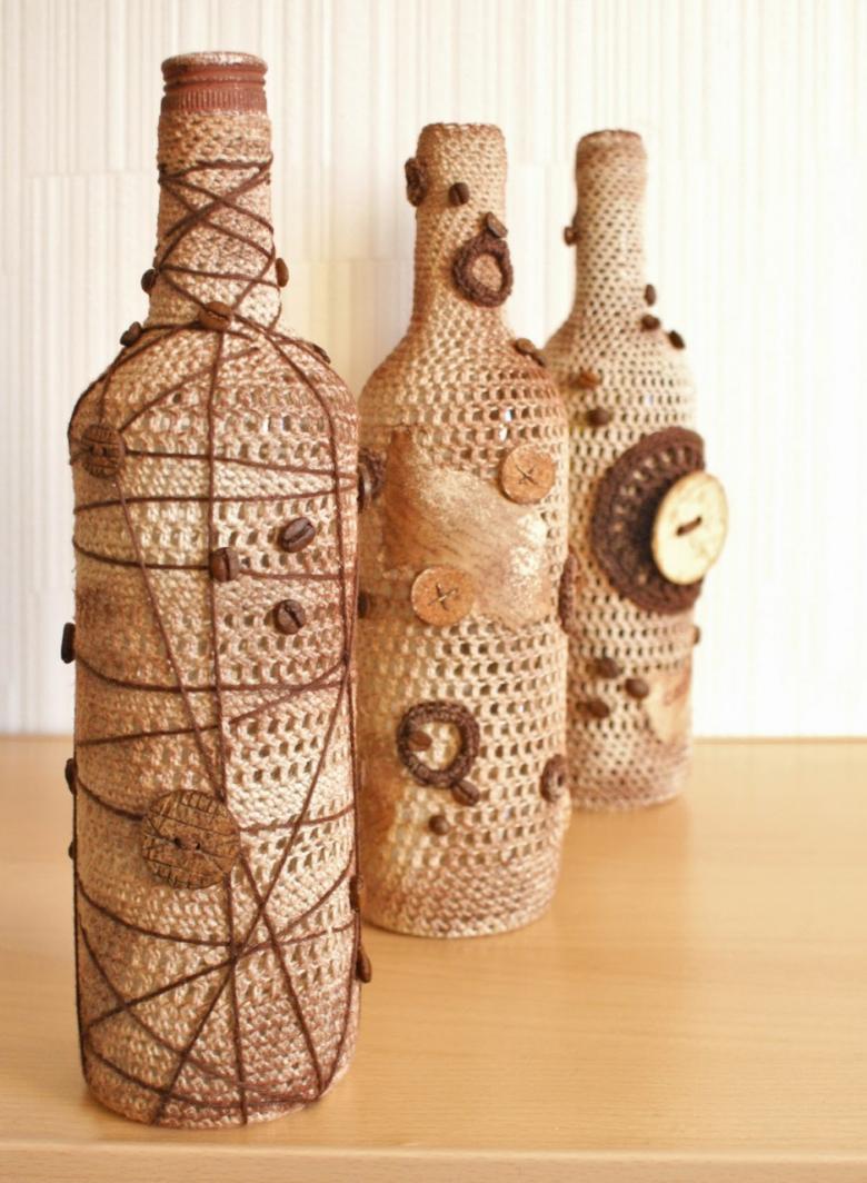 Pour les femmes au foyer qui ne veulent pas apprendre la technique du tissage de la vigne, vous pouvez faire quelque chose de plus simple. Trempez les fils dans de la colle ou de la pâte, posez-les en couches régulières ou ajourées sur un vase préalablement préparé et, une fois sec, retirez soigneusement le motif.