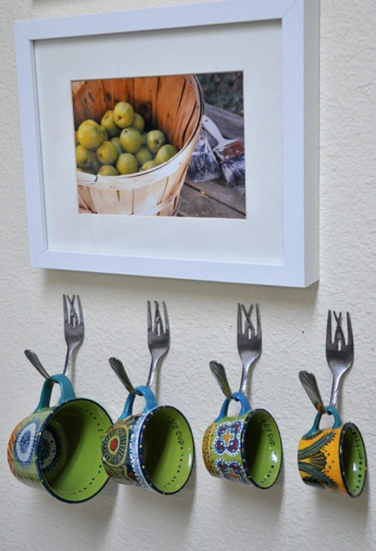 Les fourchettes pliées pour former de charmants crochets sur lesquels on peut poser des serviettes et des gants de cuisine seraient une option de design inhabituelle.
