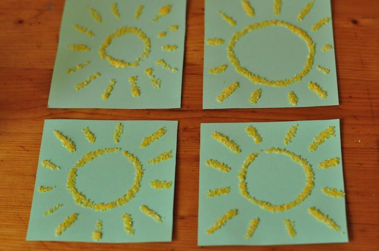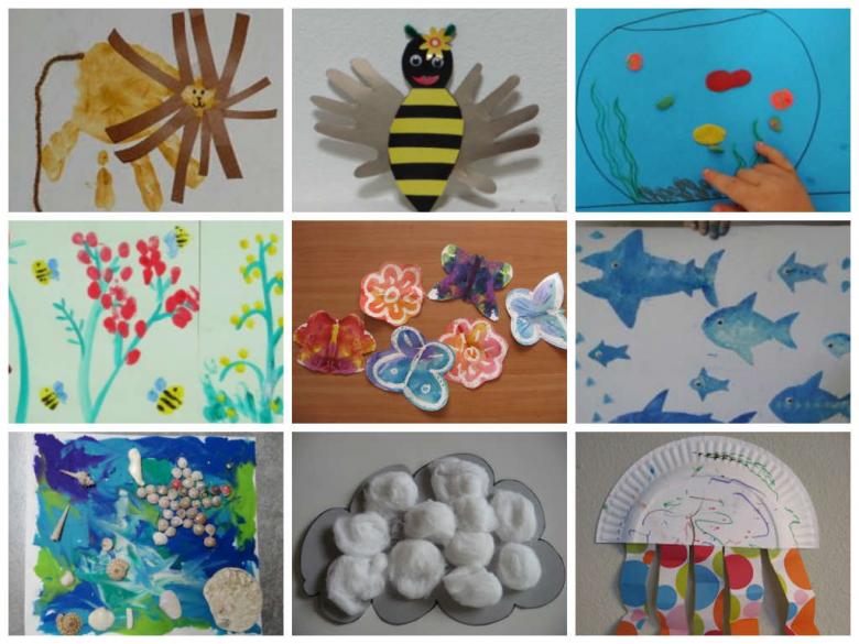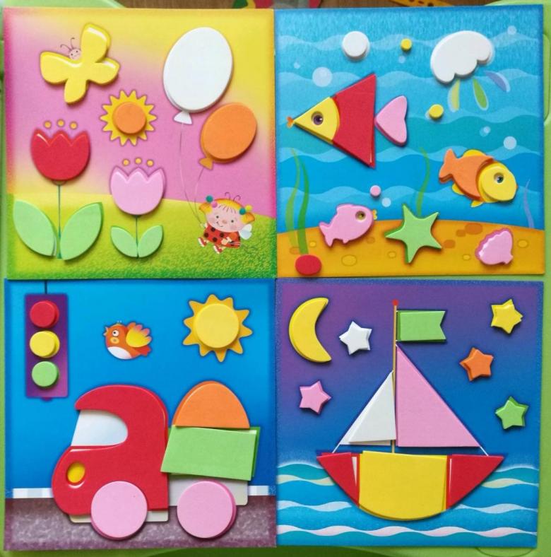 Ils sont presque aussi beaux que les dessins mais sont plus colorés. Ils utilisent de la plasticine au lieu de la colle, c'est-à-dire qu'ils placent dessus des boutons, des figurines en papier, des macaronis et des perles.