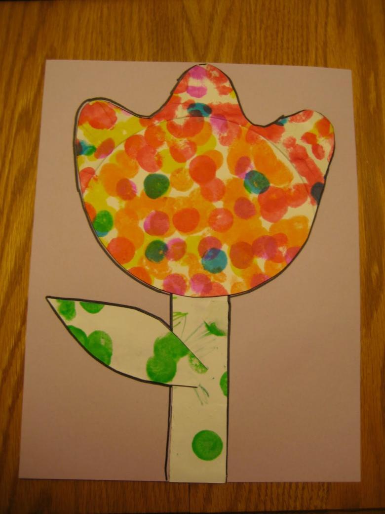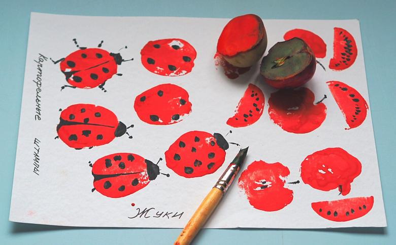 Un tampon improvisé doit être plongé dans la peinture, puis il doit "tracer" sur le papier. Voila, vos empreintes sont magnifiques).