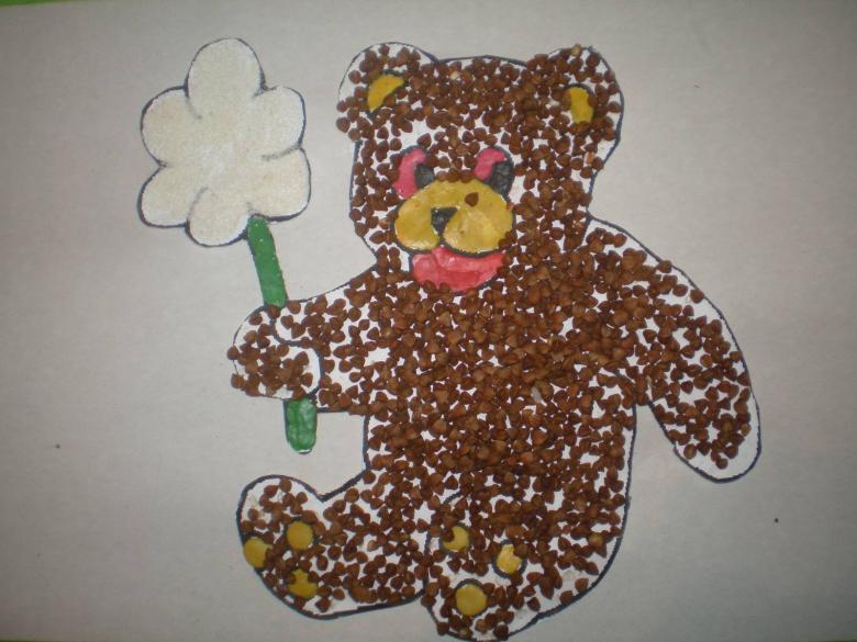 Les enfants de 2 ans doivent aimer l'artisanat à base de sarrasin, de riz, de millet... La caractéristique principale - l'originalité. Et d'ailleurs, plus le gruau est fin, mieux c'est. Utiliser une seule sorte est ennuyeux. Par conséquent, trouvez des idées de dessin (ou trouvez des options toutes prêtes dans les livres pour enfants, sur Internet, les livres de coloriage) où plusieurs options peuvent être appliquées. Le matériau peut être peint dans une couleur différente. Par exemple, beaucoup de gens aiment repeindre la semoule.