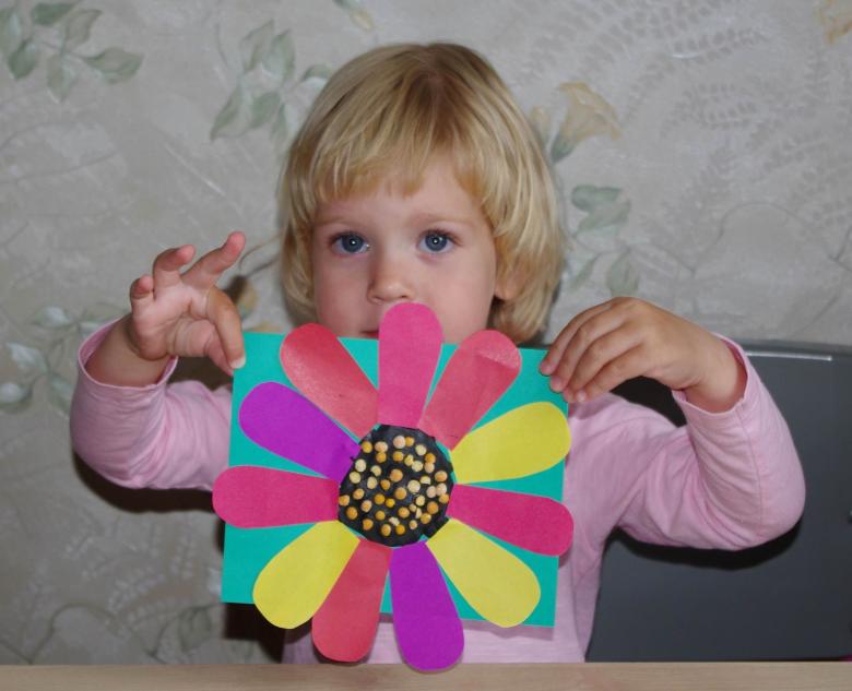 Le papier - le support le plus économique et le plus abordable pour les travaux manuels des enfants. Il peut être plié, froissé, déchiré, collé... Vous pouvez en faire une maison, un papillon, un bonhomme de neige, un soleil, un arbre ou un hérisson. Les pièces doivent être découpées et préparées à l'avance car un enfant si jeune n'est pas autorisé à prendre des ciseaux dans ses mains.