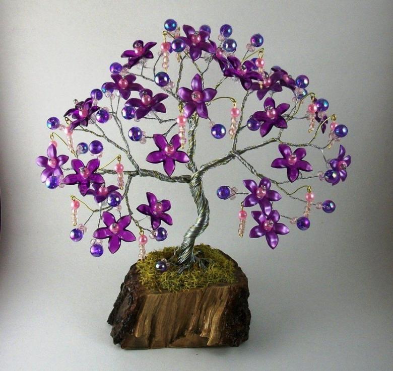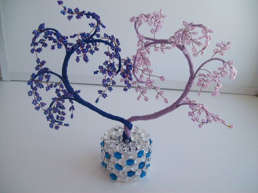 Arbres, fleurs avec perles et fil de fer
