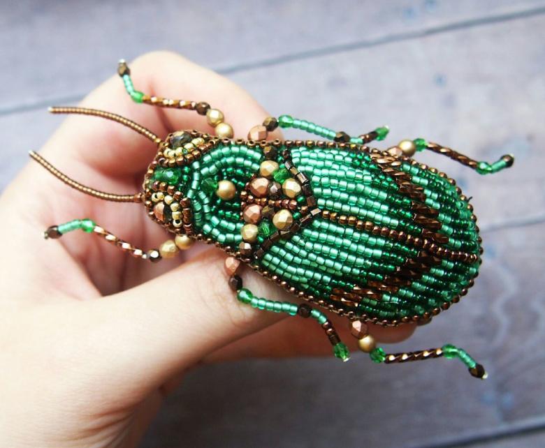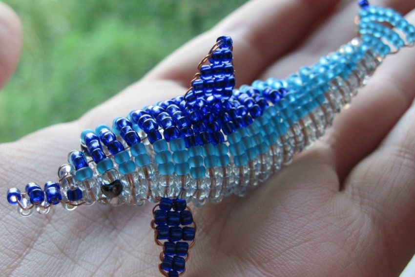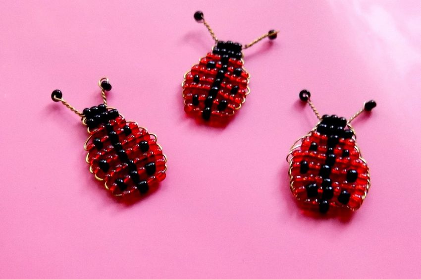 - Les ailes sont créées. Vingt-six perles orange sont posées sur plusieurs fils. Le fil est noué et torsadé pour former l'aile. Pour le fixer, vous devez tirer le fil à travers les premières perles de l'aile et des parties du corps ;