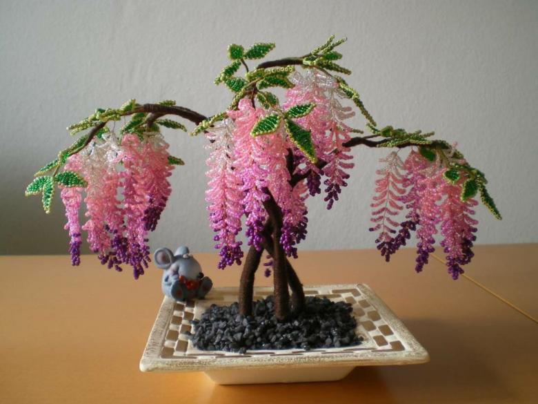 Sans connaître les points généraux, il est difficile de concevoir un tel produit par soi-même. Mais les créations en perles et en fil de fer, comme les arbres et les fleurs, peuvent être réalisées facilement et de différentes manières. L'essentiel est de comprendre la méthodologie et vous pourrez développer vos propres approches pour réaliser des perles uniques.