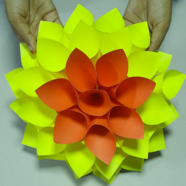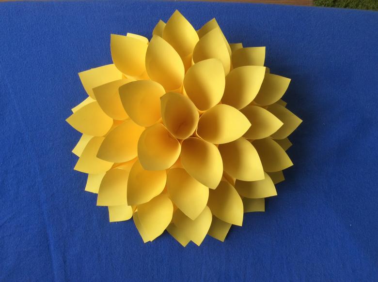 Les pétales terminés sont assemblés avec de la colle, de manière à ce que les coins de la partie large des pétales soient en quinconce.