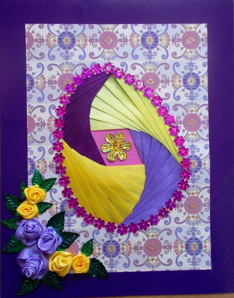 Il s'agit d'un artisanat en papier coloré, réalisé par une méthode de pose spéciale de petits morceaux de papier. Il en résulte des motifs inhabituels avec un léger effet 3D. En traduction de l'anglais, le nom signifie "pliage arc-en-ciel". Les rayures colorées sont disposées en spirale. Le travail fini dans ce schéma ressemble à un objectif d'appareil photo.