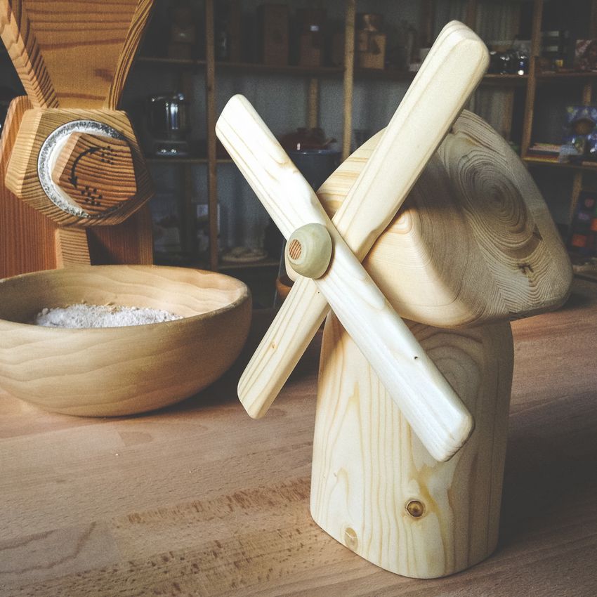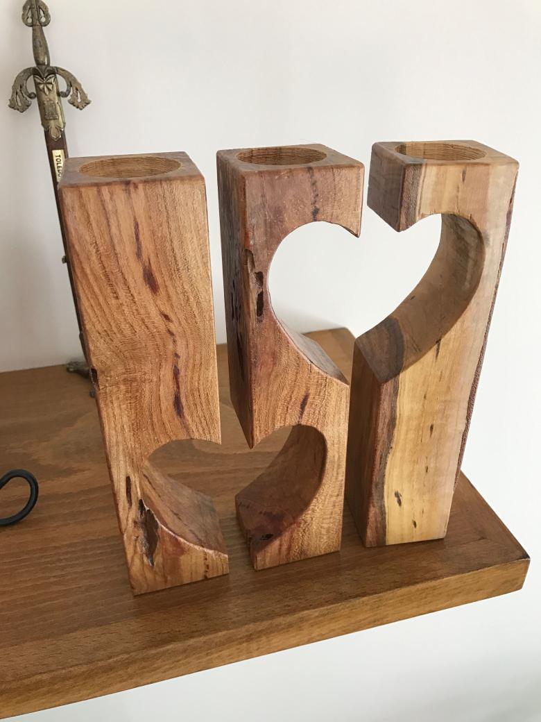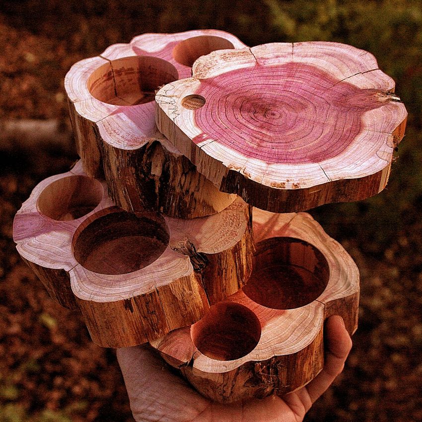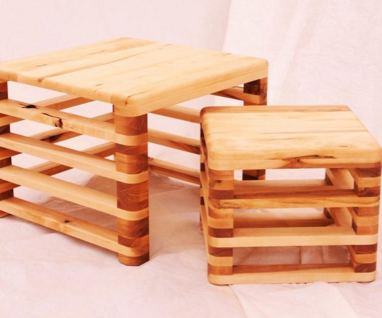 Le service de table composé de ronds de serviette et de sous-verres pour les plats chauds est généralement fabriqué en bois de noyer ou de genévrier. Pour les sous-verres, on prépare des branches sciées d'une épaisseur pouvant atteindre dix millimètres et faites à différents angles. L'écorce du tronc peut être laissée en place pour ajouter de l'originalité au produit fini.