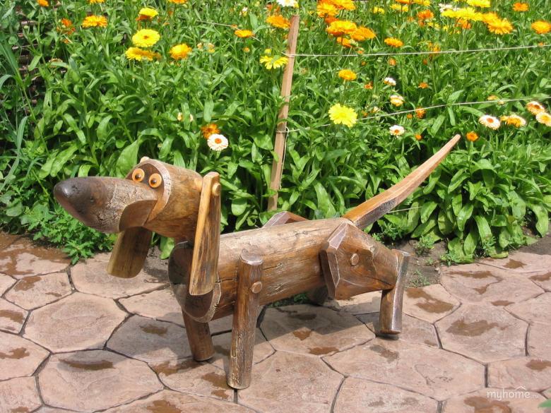Une figurine de conte de fées fabriquée à partir de courtes pièces de bois et de bois de sciage fin sera la bienvenue dans le jardin de fleurs. Les différentes parties du corps peuvent être peintes avec de la peinture à l'huile brillante.