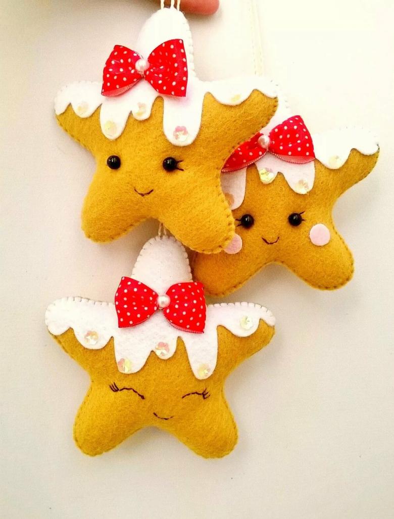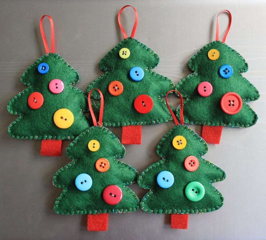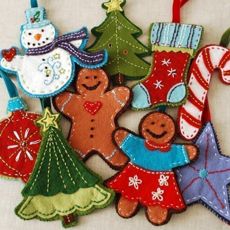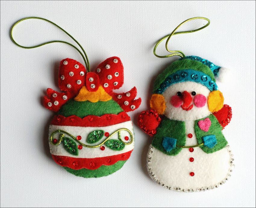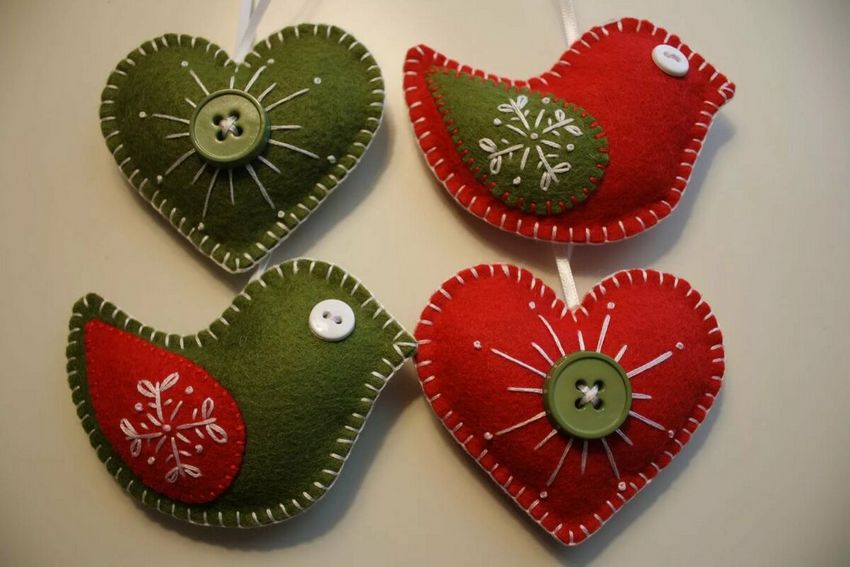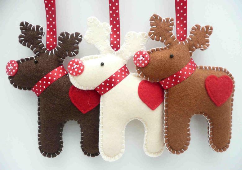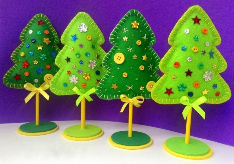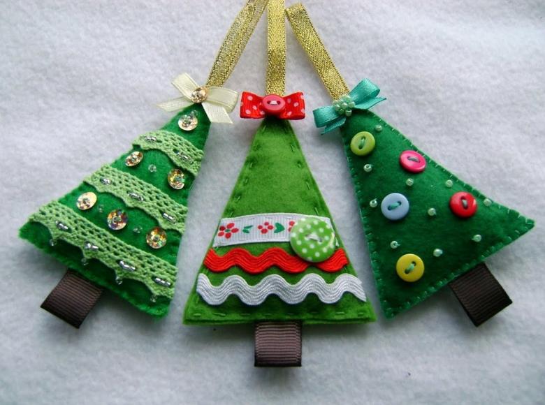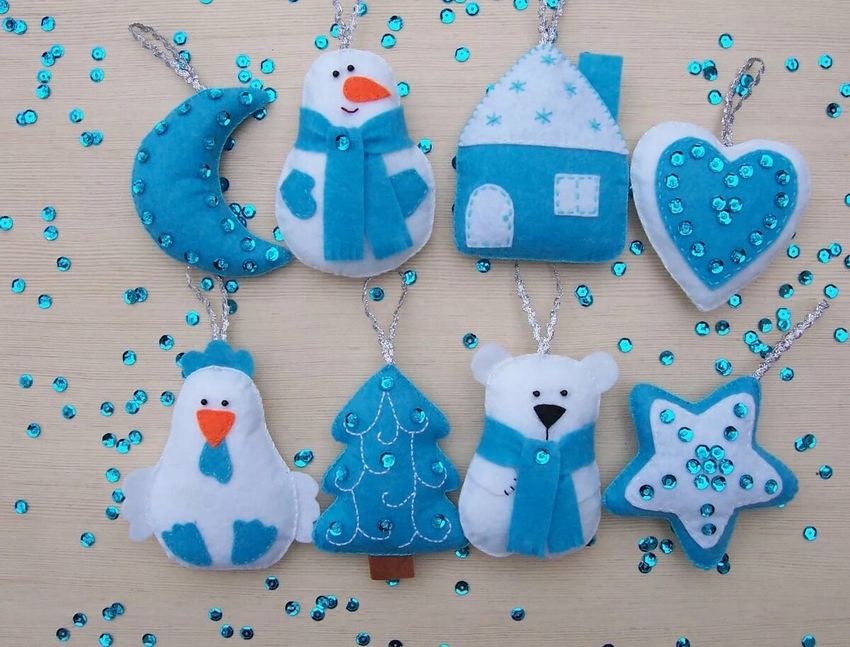 Pour le réveillon du Nouvel An, le feutre peut être utilisé pour les lumières de Noël, les jouets et les couronnes. La beauté verte peut être rendue thématique en accrochant uniquement des boules de feutre, des étoiles, des appliques de bonbons, des rennes et le Père Noël lui-même.