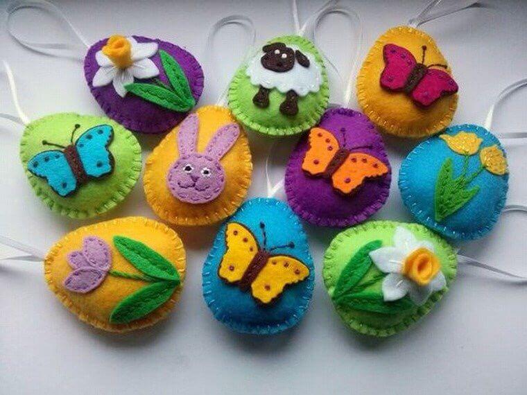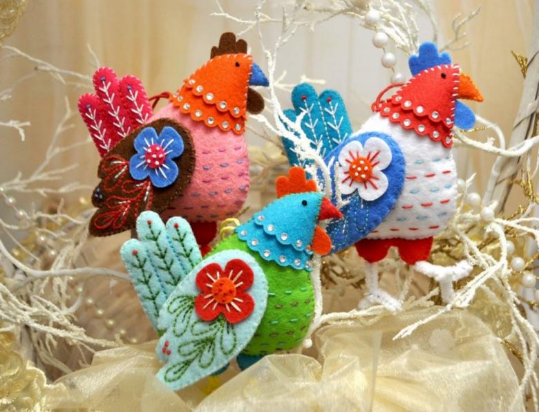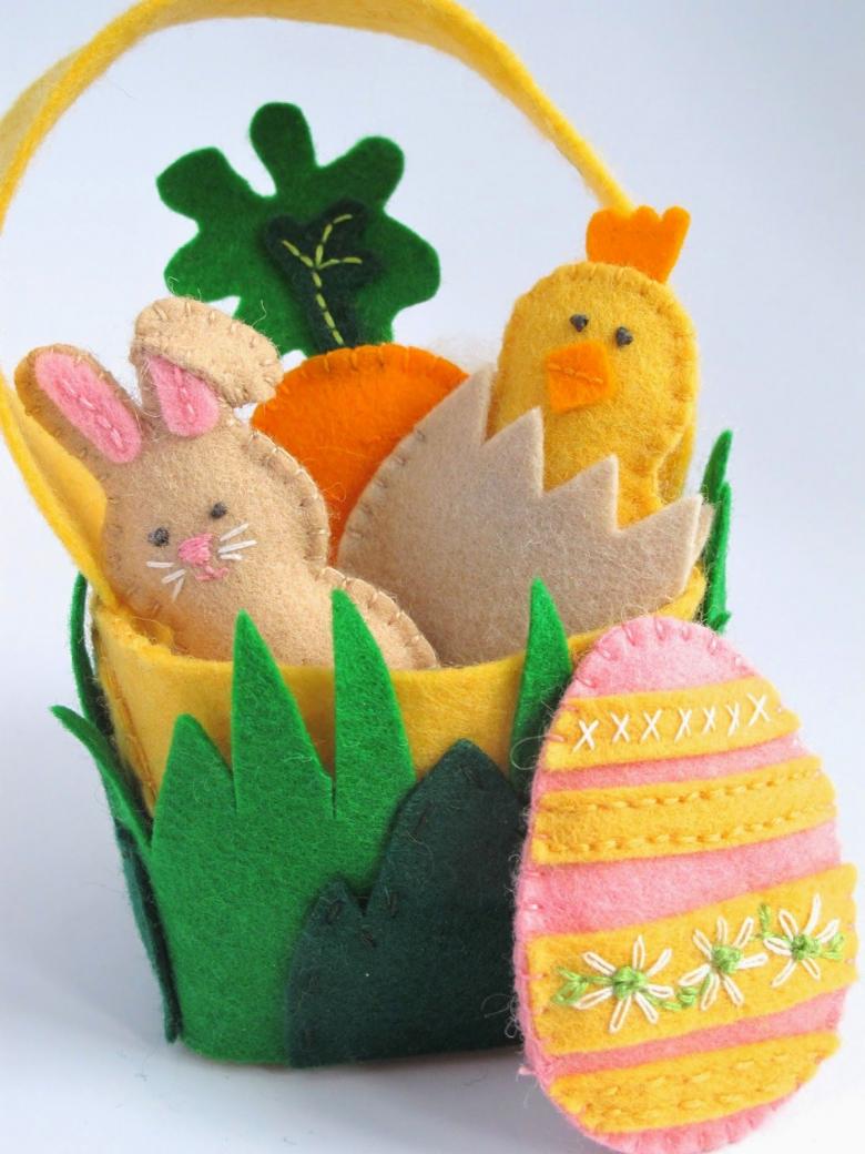 Les travaux manuels en feutre sur le thème de Pâques constituent une particularité. Des objets de vacances tels que des poules, des lapins, des nids avec des œufs, des paniers avec des cadeaux de Pâques, des anges, des oiseaux, des primevères complèteront la table de fête avec des viandes et créeront une atmosphère chaleureuse et confortable à la maison.