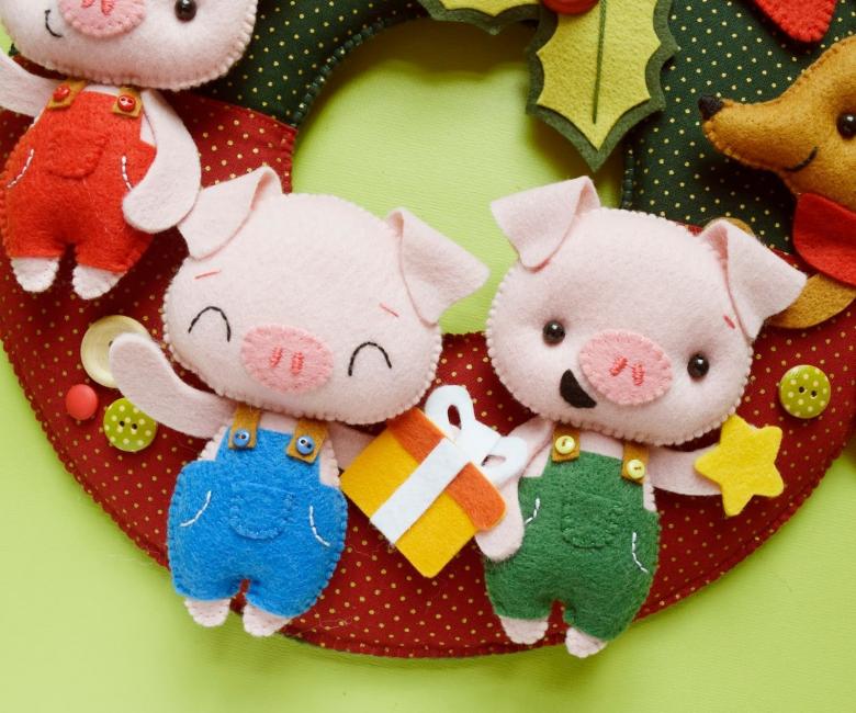 Le feutre doux et moelleux peut être utilisé pour imiter des congères et des bonhommes de neige. Les costumes du Nouvel An, les accessoires de mascarade sont fabriqués à partir de ce matériau, et on peut y ajouter des cadeaux, par exemple le symbole de la nouvelle année, un cochon ou un singe.