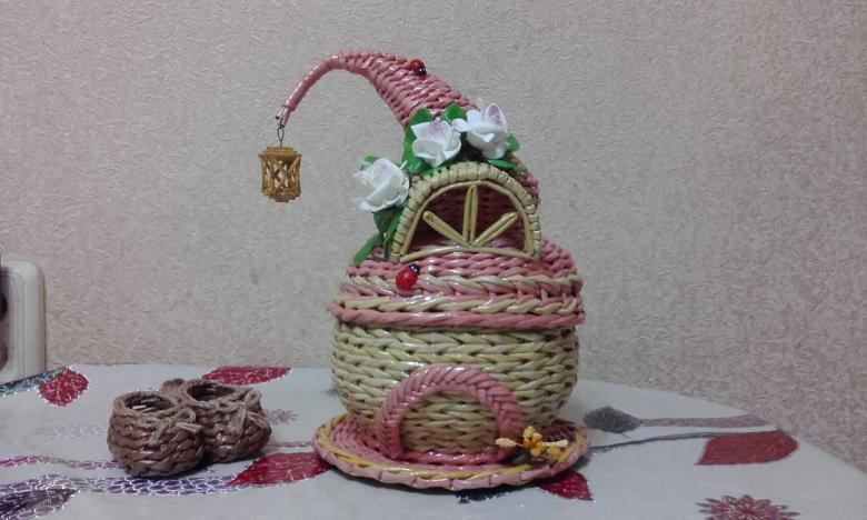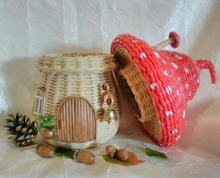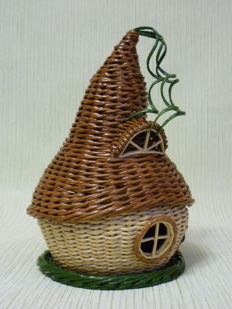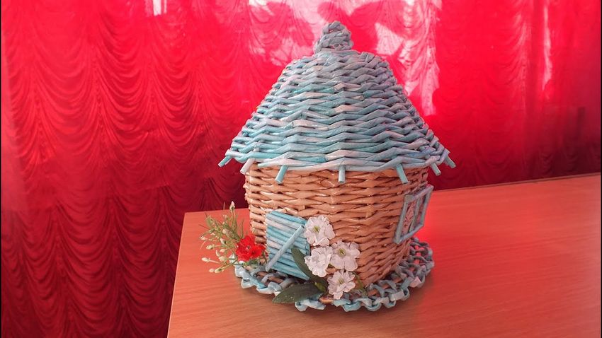 Si vous maîtrisez déjà les bases du tissage, vous pouvez essayer de réaliser des objets artisanaux insolites à partir de tubes de papier journal. Une "petite maison" peut être considérée comme une telle œuvre. Il peut être fabriqué en une seule pièce comme décoration intérieure, ou vous pouvez tisser le toit séparément pour en faire une boîte.