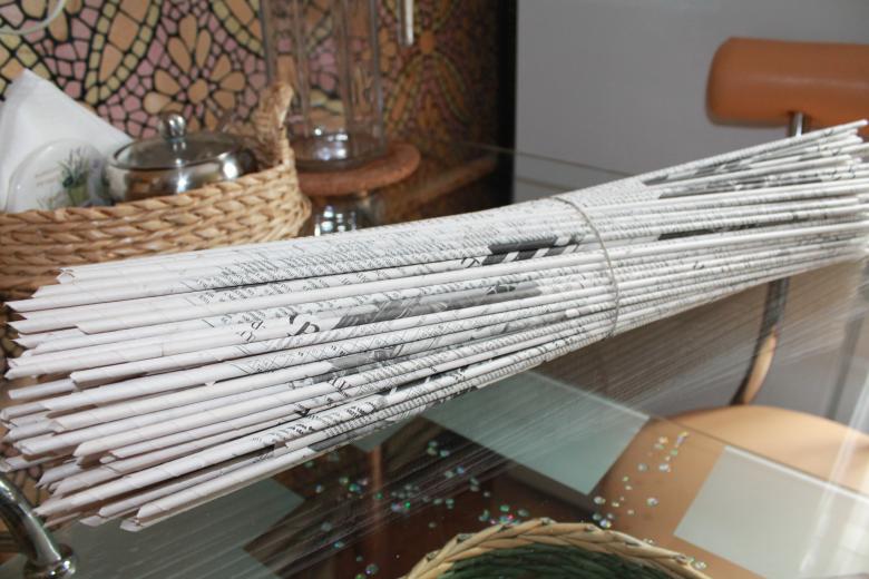 Avant de commencer, faites le plein de matériel de départ : des tubes de papier journal. La beauté des futurs produits dépendra largement de votre capacité à les tordre. Pour ce travail, vous aurez besoin de