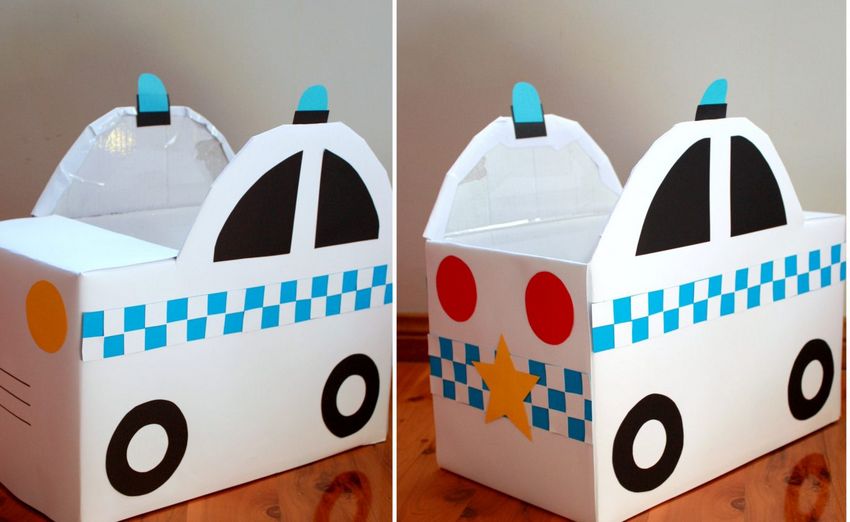 Toutes sortes de transports, réalisés en carton de leurs propres mains, seront un excellent jouet pour l'enfant, surtout si vous l'impliquez dans le processus de fabrication, qui n'est pas du tout compliqué. Vous devez fabriquer la carrosserie, en fonction du type de transport, puis découper les roues, les ailes, les buses et autres détails inhérents à l'objet choisi. Ensuite, fixez tous les éléments à leur place sur la coque.