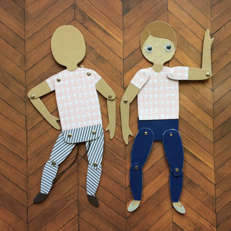 Il est assez facile de fabriquer une poupée avec des membres mobiles. Il faut dessiner les parties du personnage sur une feuille de carton, les découper et les relier à l'aide de : mini épingles, fil fin, anneaux métalliques. La plus simple de toutes les options :