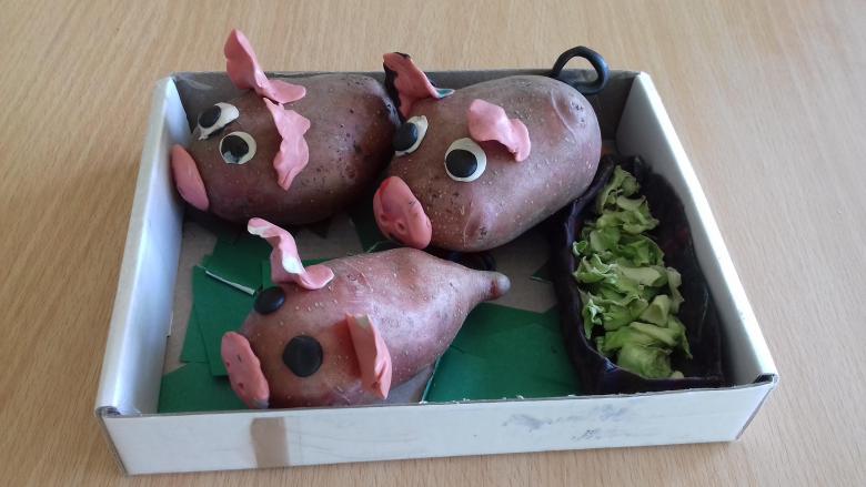 - Le même légume est utilisé pour tailler une paire d'oreilles pour chacun des 3 futurs porcelets.