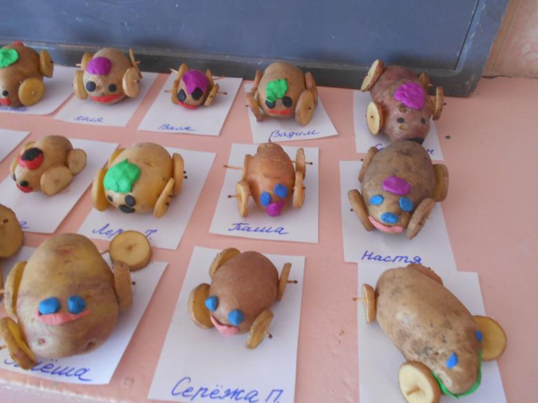 Pour donner vie à votre idée, il vous suffit de les mettre dans le bon ordre. Fabriquer des pommes de terre artisanales de ses propres mains n'est absolument pas difficile, c'est pourquoi ce produit est volontiers choisi par les écoliers et les enfants de l'école maternelle.