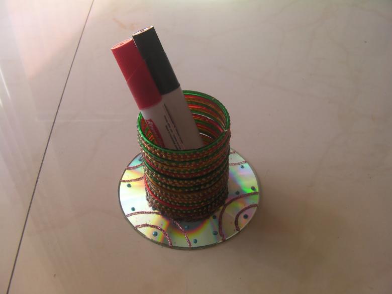 Une idée pratique pour le bricolage de disques d'ordinateur pour les enfants. Cet organisateur permet non seulement un rangement pratique des fournitures scolaires, mais il est également très attrayant grâce à la brillance des CD. Même les enfants de l'école primaire peuvent réaliser un tel bricolage avec l'aide de leurs parents.