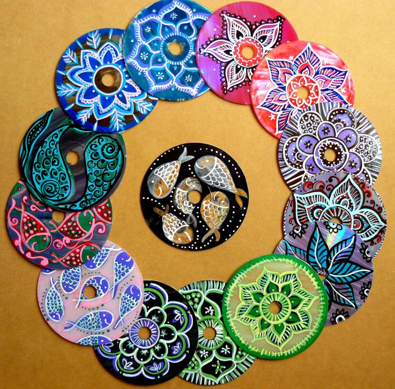 Les disques sont parfaits pour réaliser toutes sortes de travaux manuels pour la maternelle ou l'école. Ils sont utilisés pour créer des décorations originales pour la maison, des aménagements paysagers, toutes sortes d'articles ménagers utiles et d'autres produits.