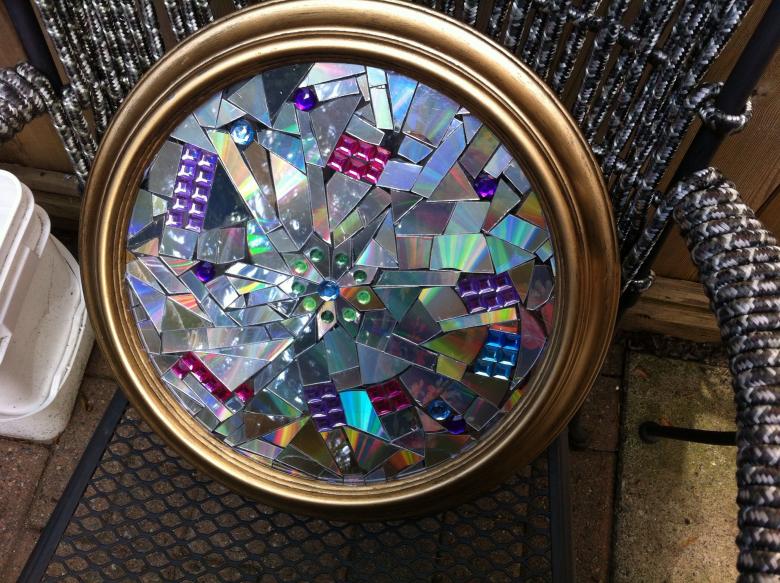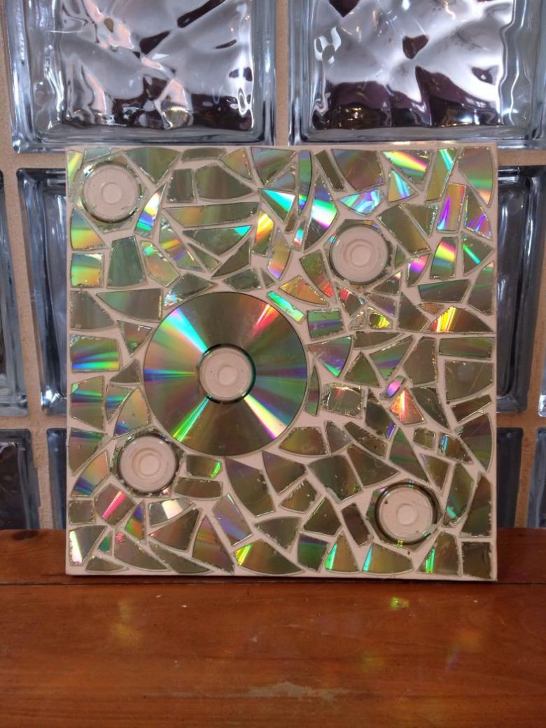 - Coupez les disques en morceaux de différentes tailles. Chaque pièce est un morceau différent de la mosaïque.