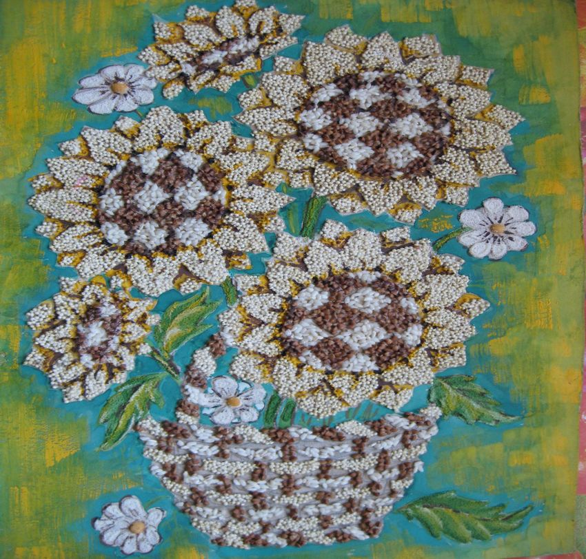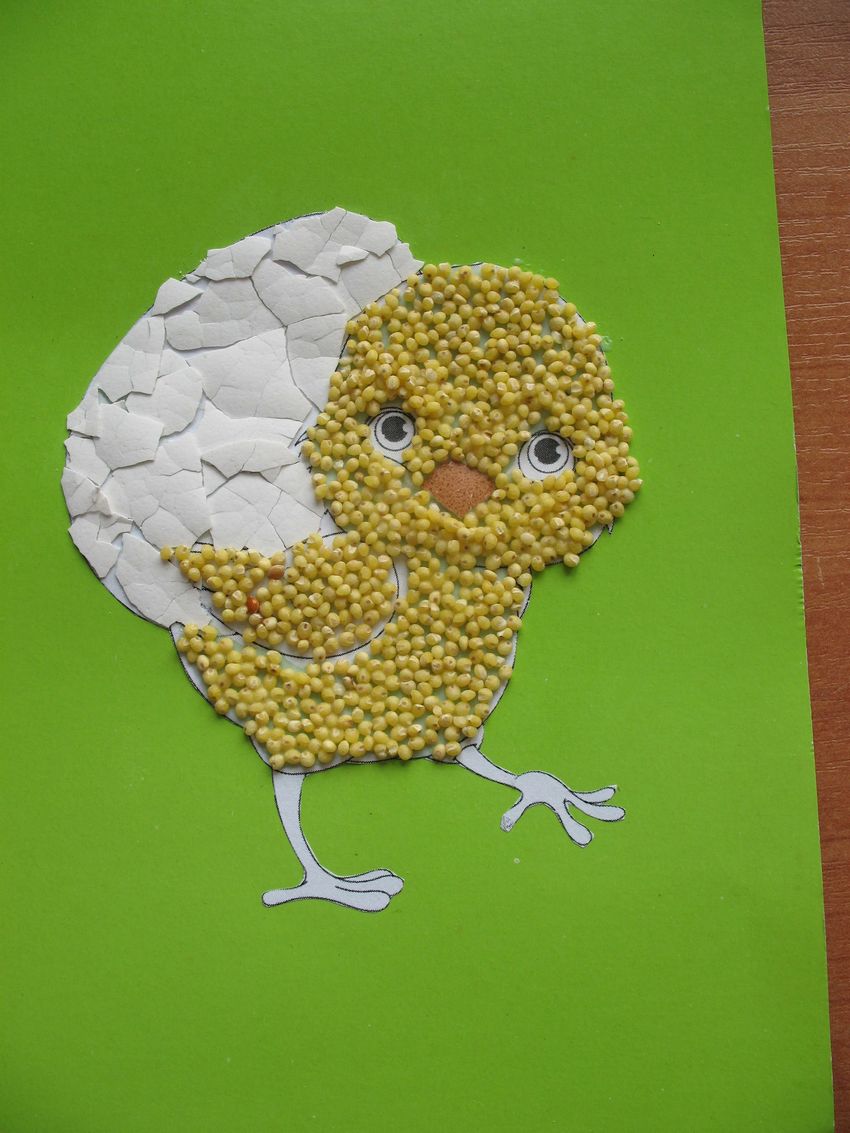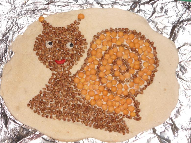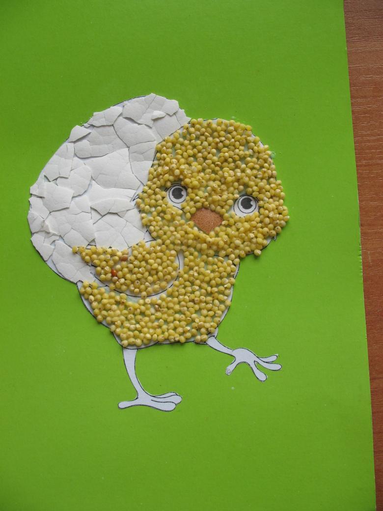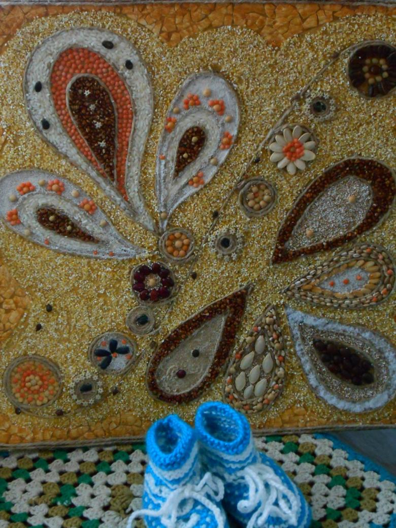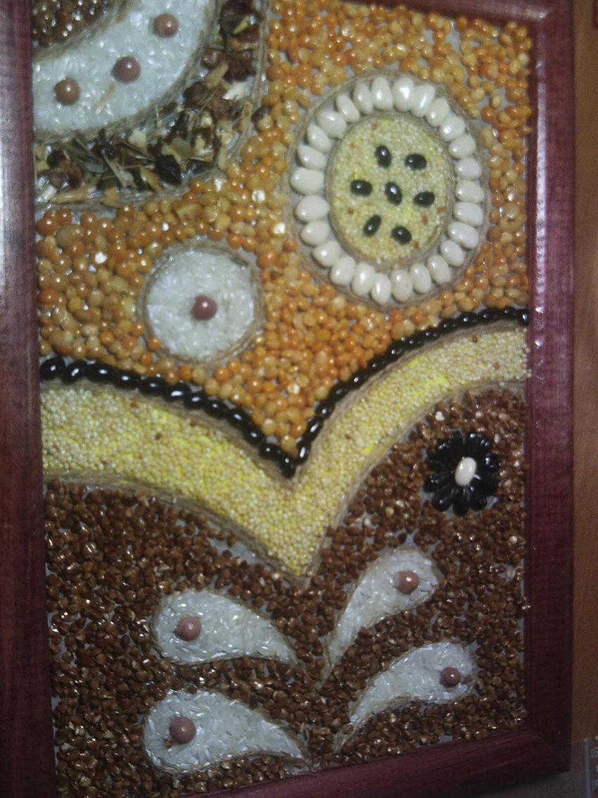 Cette décoration murale est un excellent exemple de bricolage à base de céréales pour les enfants de 4-5 ans. L'intrigue peut être trouvée sur Internet ou inventée par vous-même. Il est préférable d'utiliser des céréales de tailles, de formes et de couleurs différentes.
