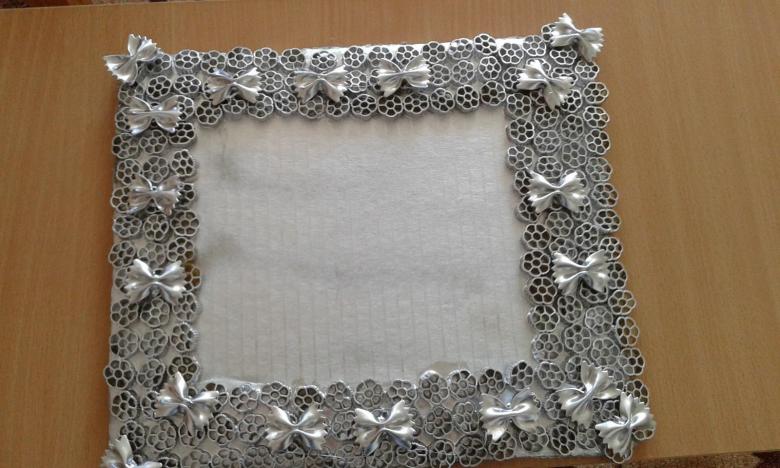 Il est parfois difficile de trouver un cadre photo au design original dans les magasins. Ne désespérez pas. Vous pouvez en acheter un normal et le décorer avec des macaronis en forme de roues et de nœuds. À la fin, il est préférable de recouvrir le produit d'une peinture argentée ou dorée.