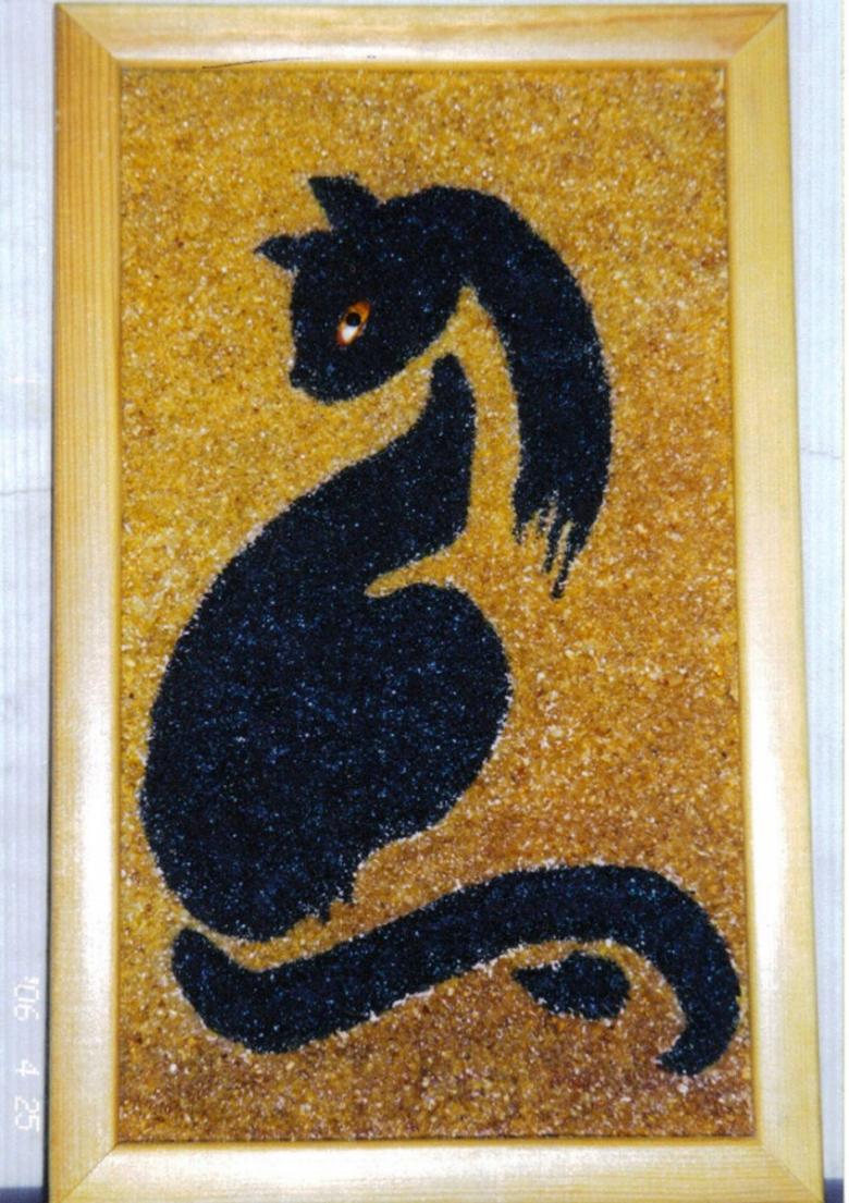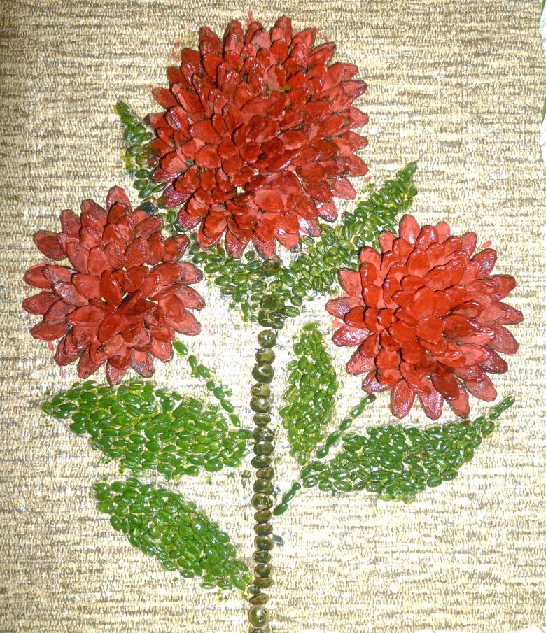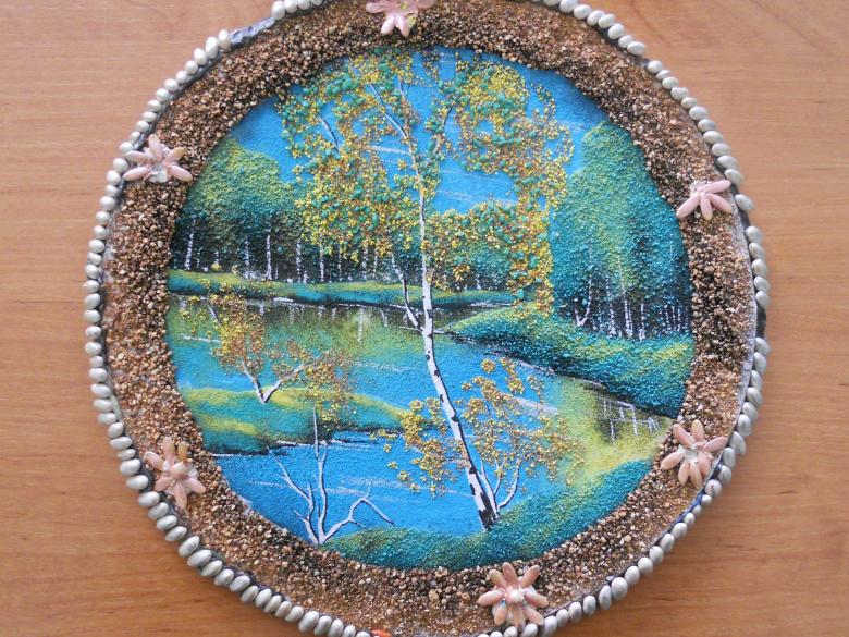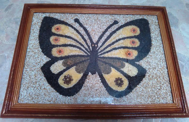 Vous devez transférer le contour de votre photo préférée sur la surface de travail de la table, la recouvrir de colle et la remplir de différents types de grains. Après le séchage de la colle, le plateau de la table doit être recouvert de verre, en le fixant soigneusement.