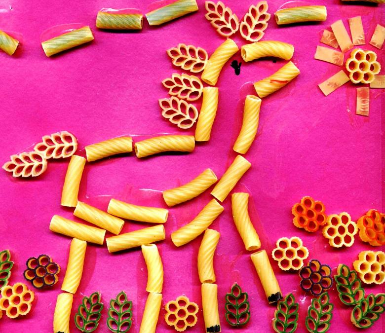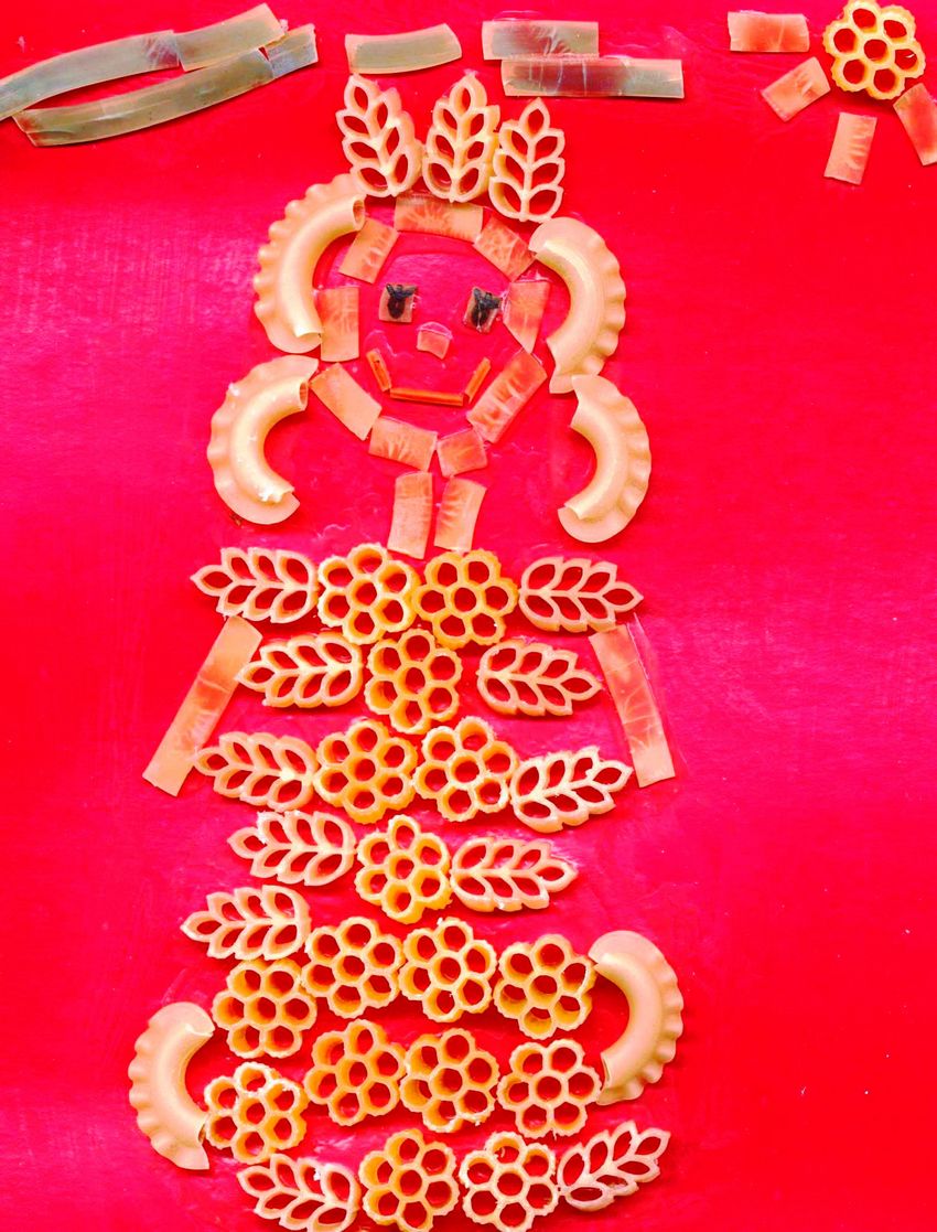 De nombreux parents, éducateurs et centres de développement préscolaire choisissent les pâtes pour l'artisanat en raison de leur accessibilité, de leur respect de l'environnement, de leur faible coût, de leur commodité et de leur facilité de production, ainsi que de la grande variété de matériaux en termes de taille et de forme : cornes, spirales, roues, spaghettis et coquillages. Ce matériel simple permet à l'enfant de faire preuve d'imagination, et les avantages des compétences pratiques ne se comptent plus :